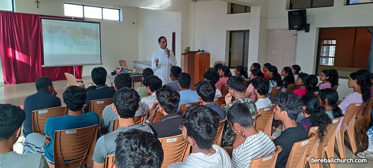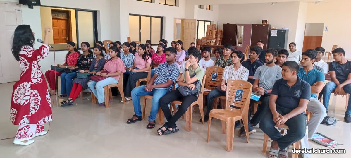 A special session was conducted at Most Holy Redeemer Church Derebail for the students receiving the Sacrament of Confirmation on Sunday, 23 November 2025, from 3 PM to 5 PM. The session, held at the church premises, focused on the topics of the *"Holy Spirit & Holy Eucharist"* and was led by Ms. Jean Lobo from MFC Singles, Mangalore.