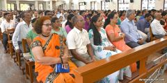 The celebratory programme was held after the Mass at the Church Meeting Hall. The programme began with a prayer song by Mrs Jane Machado. President, Mr.Anil Patrao welcomed the dignitaries on to the dais. Rev. Fr. Joseph Martis, Parish Priest and Spiritual Director of Catholic Sabha, Rev. Fr. Gerald Francis Pinto, Parish Pastoral Council Vice-president Mrs. Sheela D'Souza, Secretary Mr. Denzil Pinto, Varado President of Catholic Sabha Mr.Colin Miranda and the Coordinator of Commissions, Mr. Edward Coelho were the dignitaries present.