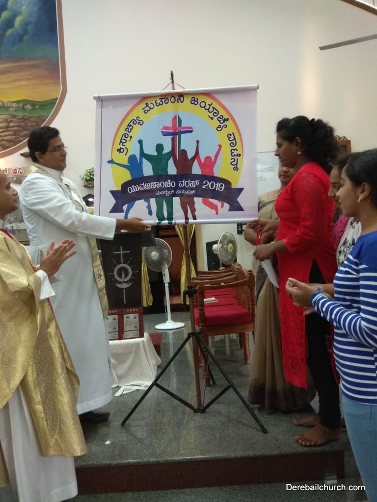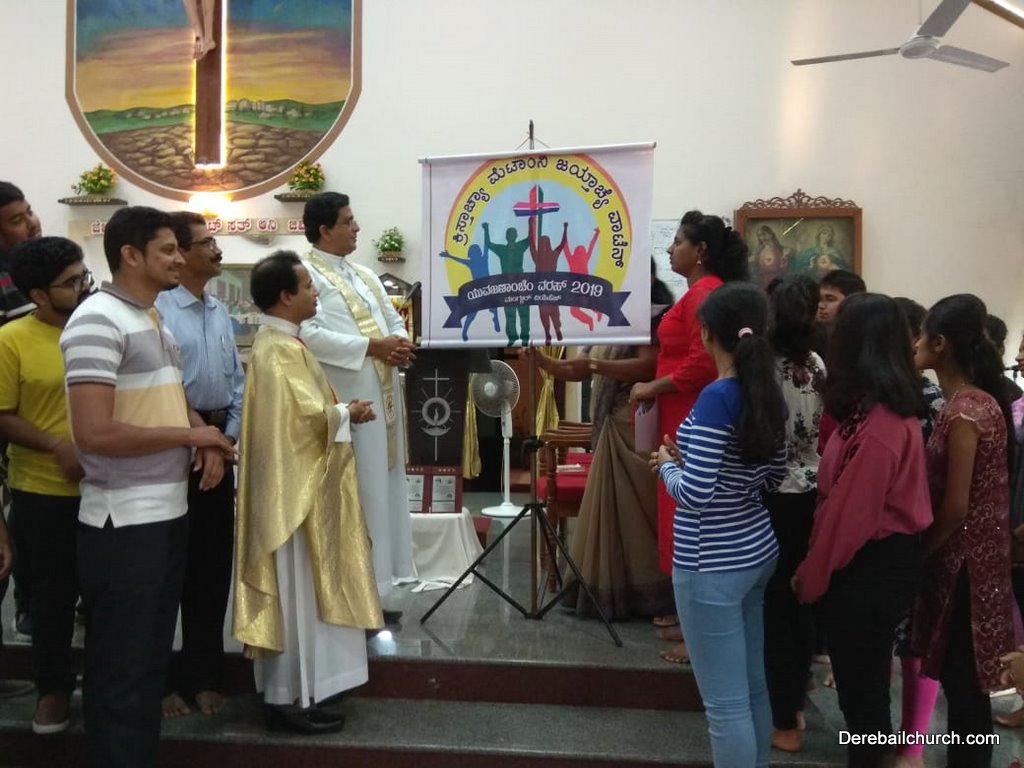 Soon after the mass the Year of Youth Logo was unveiled. Rev. Fr. Austin Peter Peres - Parish Priest and Director of YSD/ICYM, Derebail Unit Unveiled the Logo while the theme song was played. Rev. Fr. Gratian Alvares - Associate Director, Mr. Edward Coelho - Vice President of Parish Pastoral Council, Mrs. Lizzie Fernandes - Secretary of Parish Pastoral Council and Animator of YSD/ICYM, Youth of Derebail Parish and other Parishioners who attended 07:00 AM mass participated in the inaugural and unveiling of the Logo.