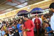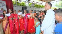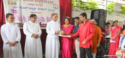 The program commenced with a colorful procession that marked the beginning of the celebrations, as the Chief Guest Rev. Fr Joseph Martis ,the Parish Priest and Guest of Honour Rev. Fr Wilson Tauro, OCD, Assistant Parish priest- Fr Nelson Peris, Br Augustine, PPC Vice -President, Mrs Sheela D’Souza and PPC Secretary Mr Denzil Pinto were escorted by YCS members and animators under traditional umbrellas, and were warmly welcomed with the symbolic “Paan-Pod Udhak”.