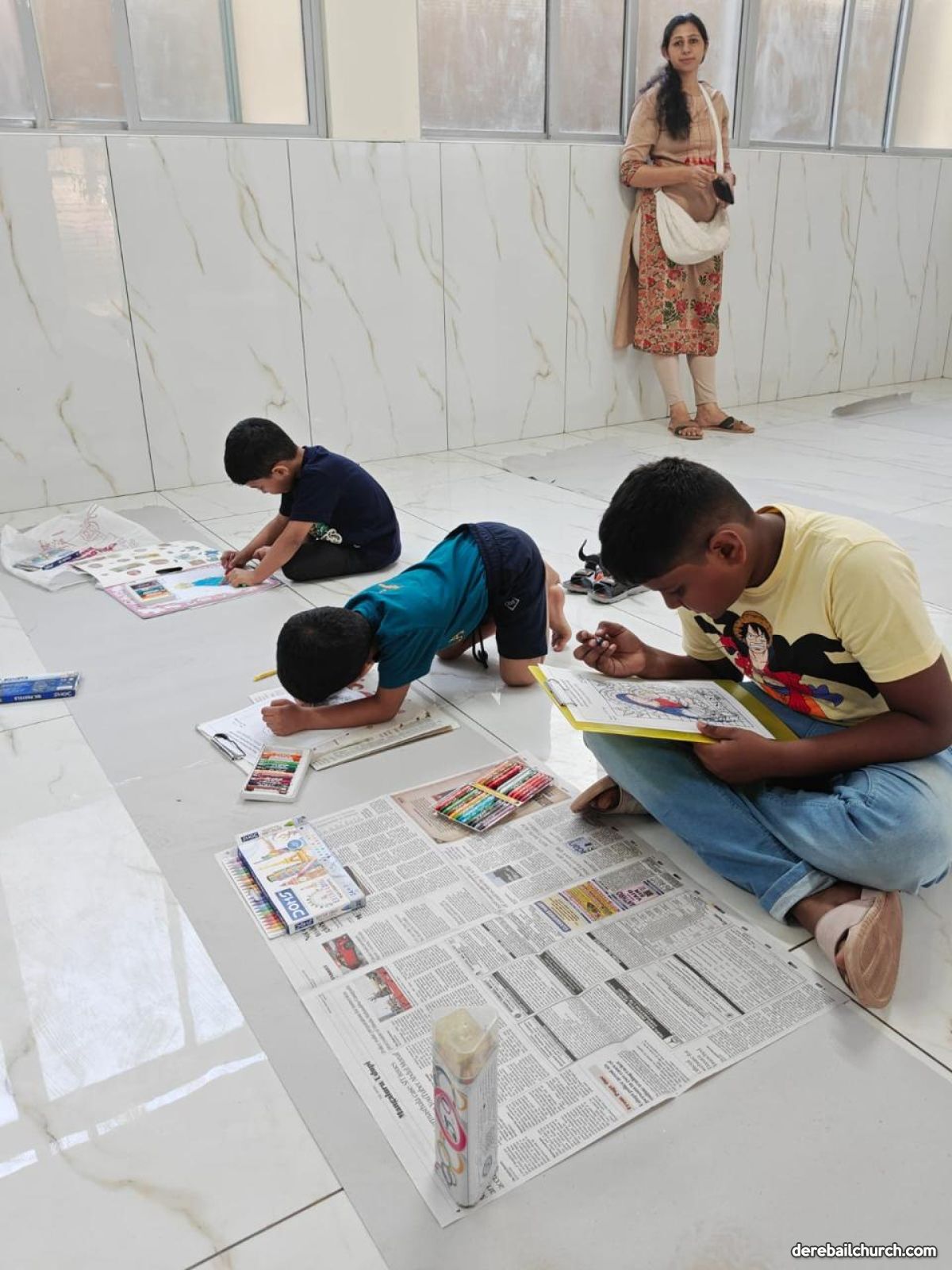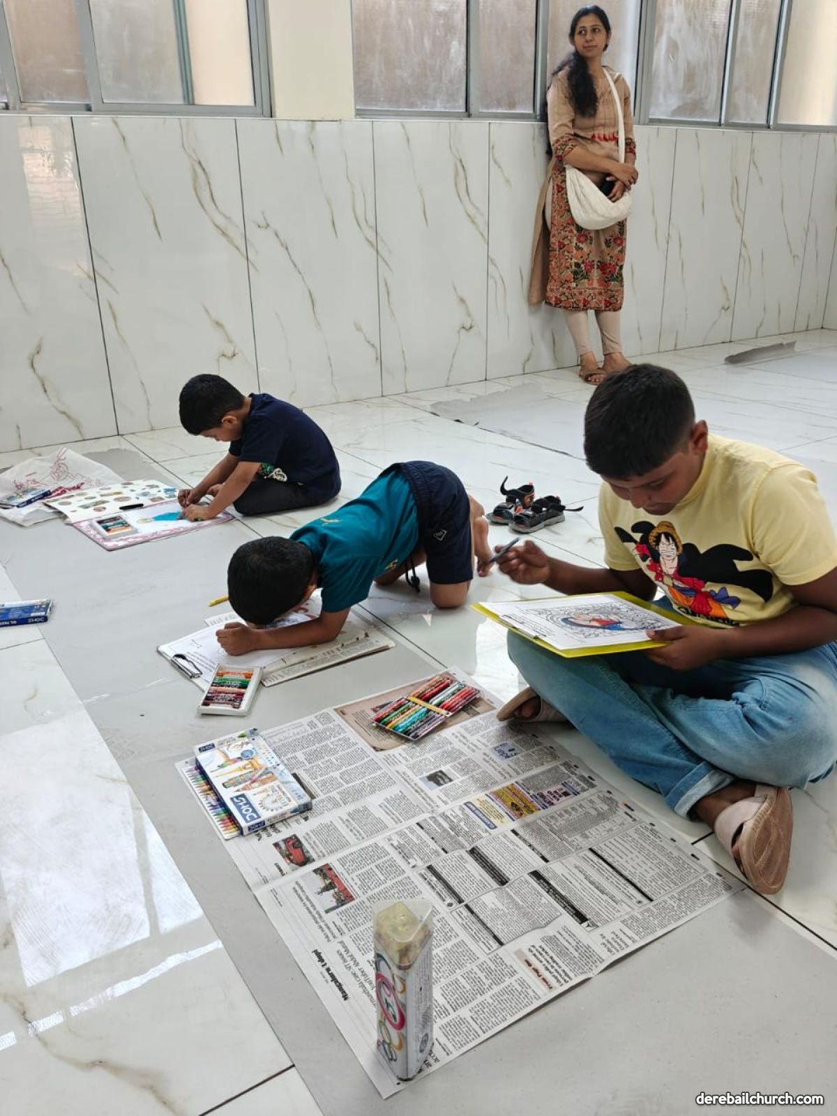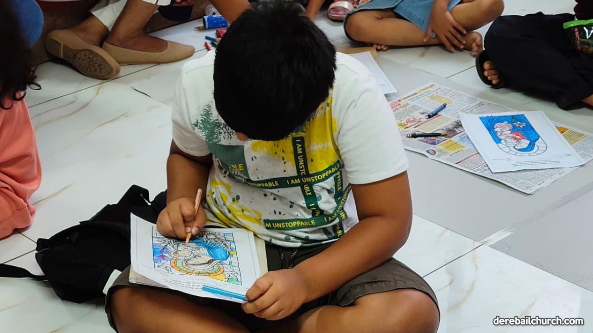 3rd to 4th Std.: Colouring an image of Mother Mary with Jesus using pencils or crayons