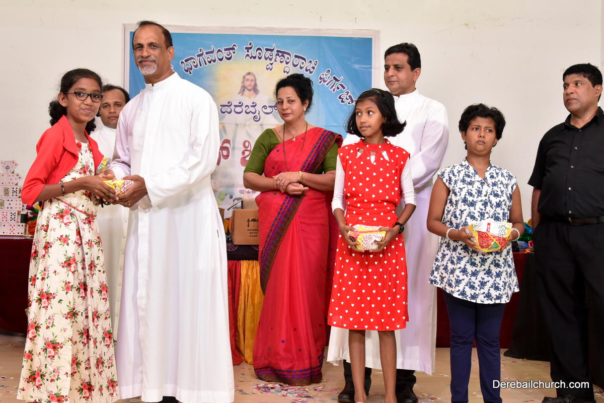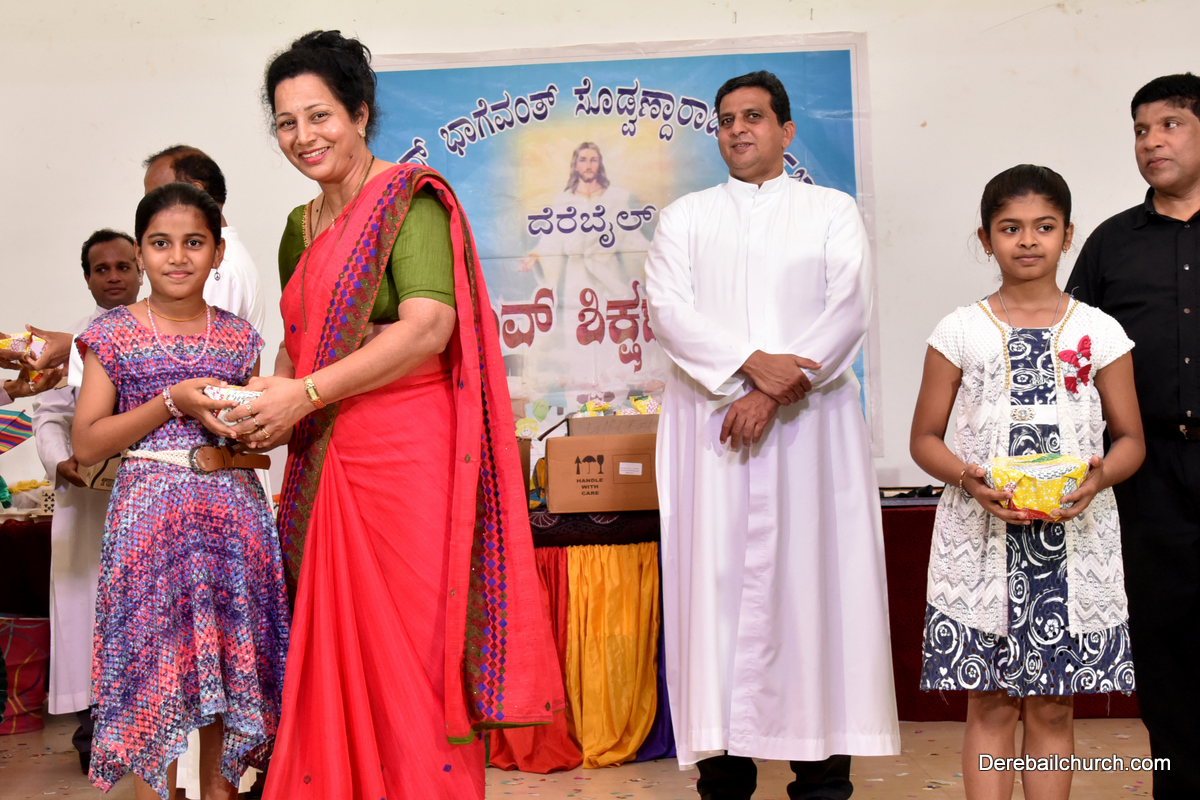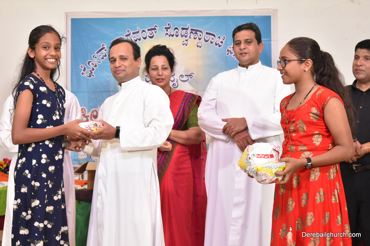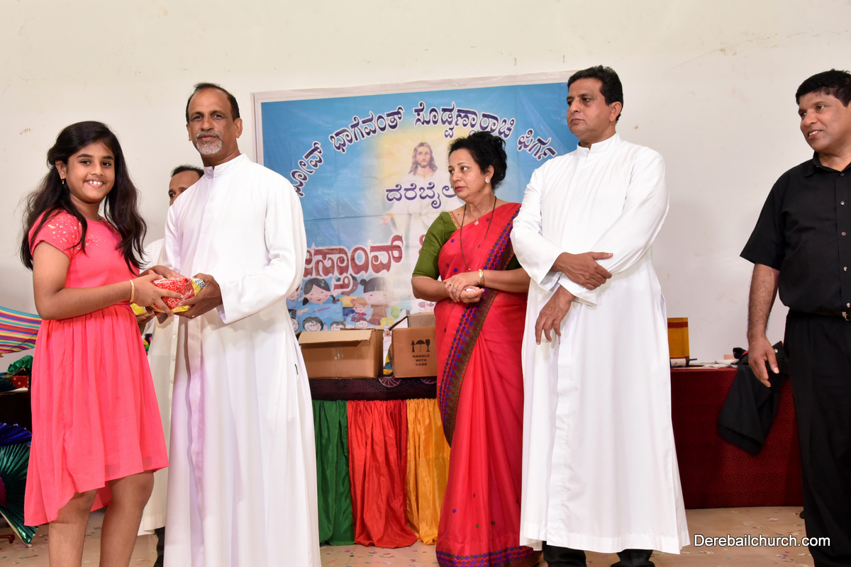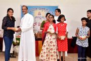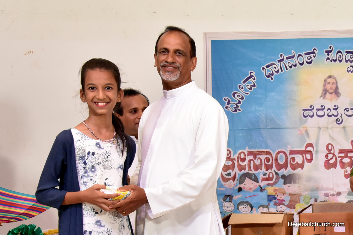The cultural programme was organised in the Parish Hall at 3.30 PM. The programme began with a prayer song sung by the catechism teachers. Fr.Gratian welcomed the gathering. A Bible magic show was presented by Fr Ivan Madtha and his sister Sr. Doris. Amisha Rodrigues, Christon Menezes from Ycs and Brayan Mendonca of 10th Std shared their experience of Sunday catechism. Mrs Sharmila Mascarenhas on behalf of the teachers shared the beautiful experience of teaching Sunday Catechism to the Children. Fr Austin addressed the gathering and appreciated the parents and children for their whole hearted cooperation in the mission of Sunday catechism.  The dignitaries present on the Dias were Fr Austin Peres Parish Priest, Fr Gratian Alvares Residential Priest, Fr Gerald Pinto Residential Priest, Mrs Sheela D'Souza the Vice president of Parish Pastoral Council,  Mr Gaulbert Pais the Secretary of Parish Pastoral Council, Fr Ivan Madtha and Mr. Edward Coelho Catechism Coordinator. The prizes were distributed to the children for excelling in catechism exam, full attendance and for workbook.As a part of encouraging the little children to sacrifice and make their contribution to misson Sunday a collection box was allotted to every child. These boxes were returned with the offerings of the little children. Special prizes were given to the children who had collected the maximum amount. Catechism teachers were also felicitated for their selfless service on Sunday's for teaching students. Miss Anu D'Silva compered the programme and Mr Edward Coelho proposed the vote of thanks. The programme concluded with a hymn.