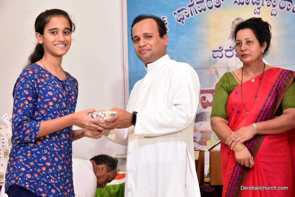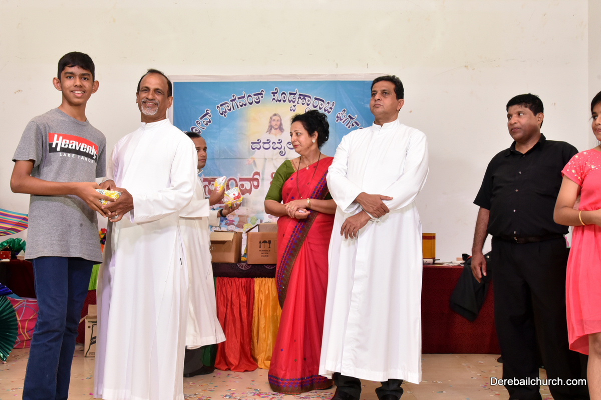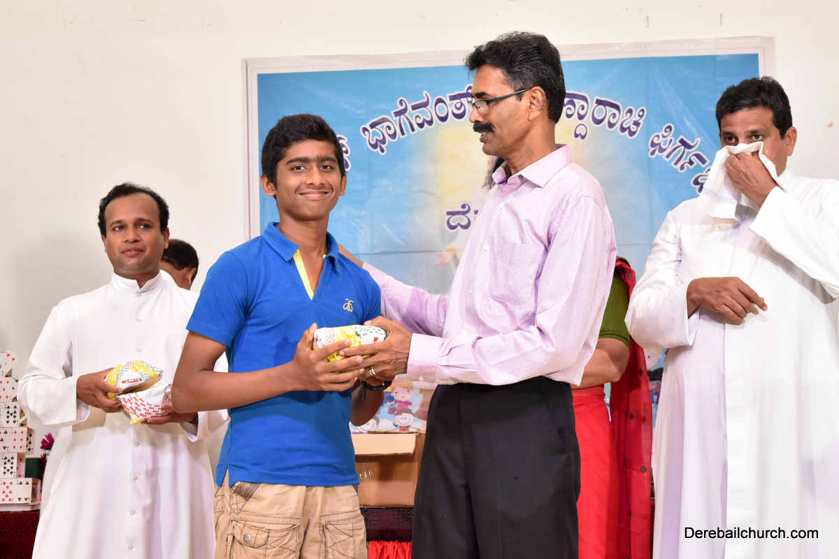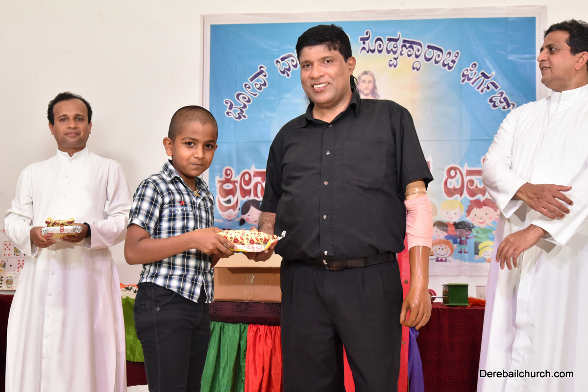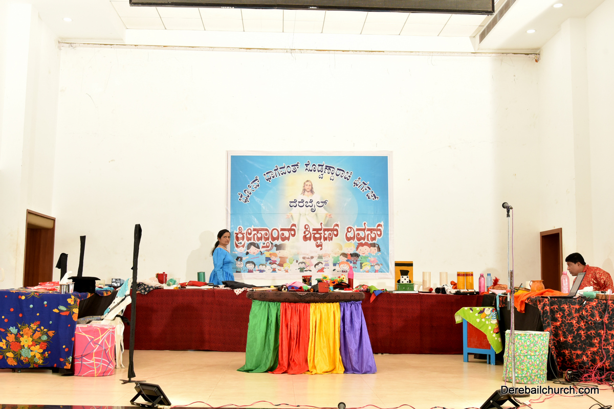 The cultural programme was organised in the Parish Hall at 3.30 PM. The programme began with a prayer song sung by the catechism teachers. Fr.Gratian welcomed the gathering. A Bible magic show was presented by Fr Ivan Madtha and his sister Sr. Doris. Amisha Rodrigues, Christon Menezes from Ycs and Brayan Mendonca of 10th Std shared their experience of Sunday catechism. Mrs Sharmila Mascarenhas on behalf of the teachers shared the beautiful experience of teaching Sunday Catechism to the Children. Fr Austin addressed the gathering and appreciated the parents and children for their whole hearted cooperation in the mission of Sunday catechism.  The dignitaries present on the Dias were Fr Austin Peres Parish Priest, Fr Gratian Alvares Residential Priest, Fr Gerald Pinto Residential Priest, Mrs Sheela D'Souza the Vice president of Parish Pastoral Council,  Mr Gaulbert Pais the Secretary of Parish Pastoral Council, Fr Ivan Madtha and Mr. Edward Coelho Catechism Coordinator. The prizes were distributed to the children for excelling in catechism exam, full attendance and for workbook.As a part of encouraging the little children to sacrifice and make their contribution to misson Sunday a collection box was allotted to every child. These boxes were returned with the offerings of the little children. Special prizes were given to the children who had collected the maximum amount. Catechism teachers were also felicitated for their selfless service on Sunday's for teaching students. Miss Anu D'Silva compered the programme and Mr Edward Coelho proposed the vote of thanks. The programme concluded with a hymn.