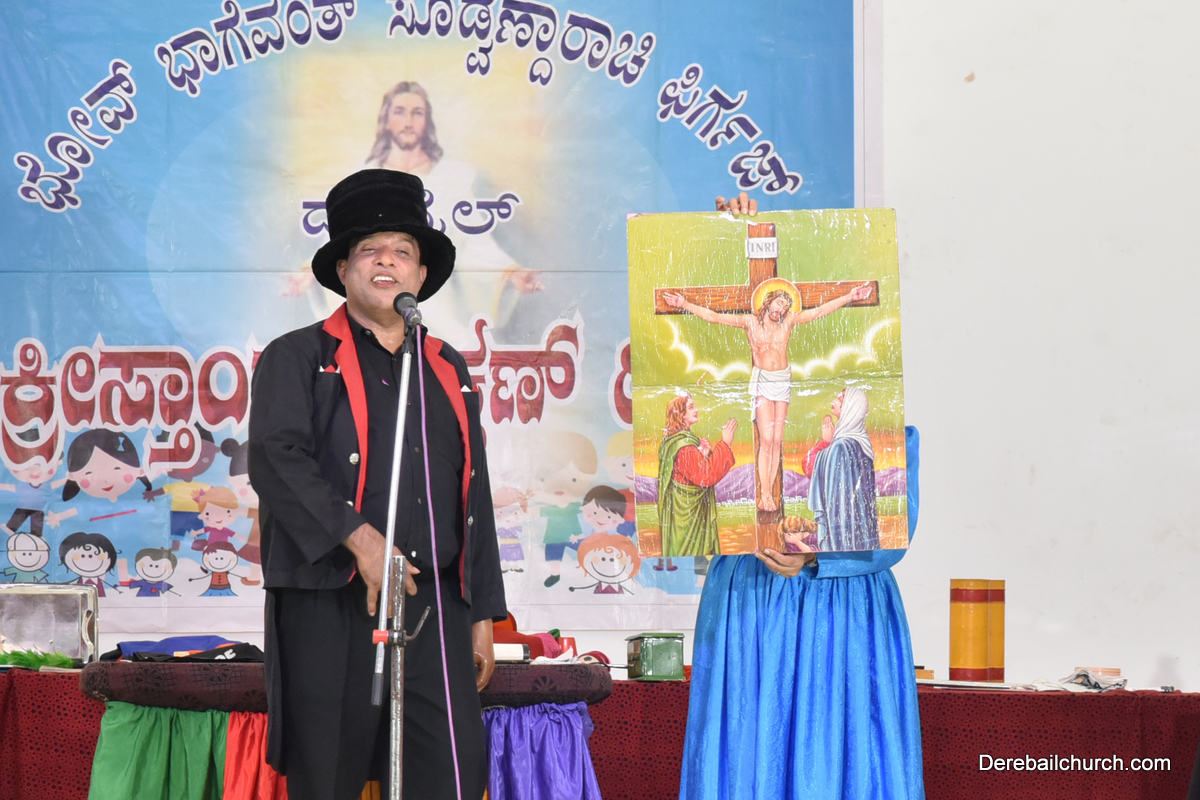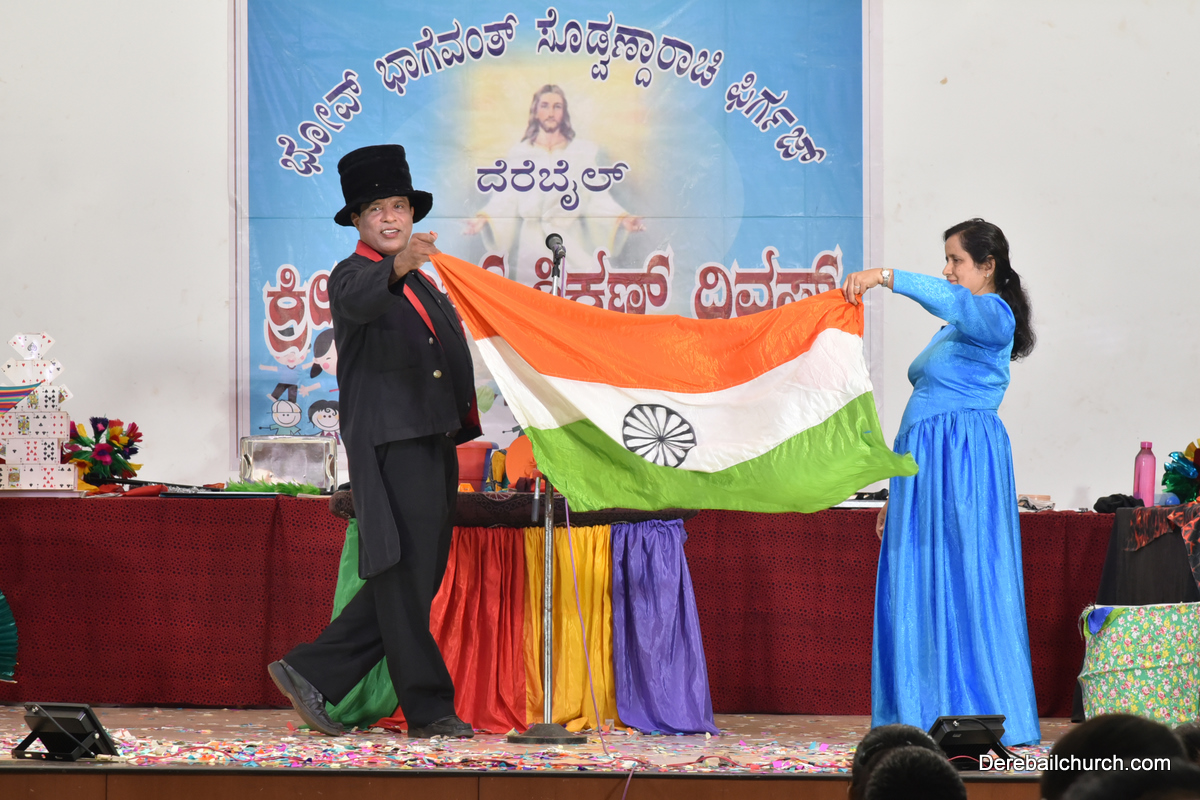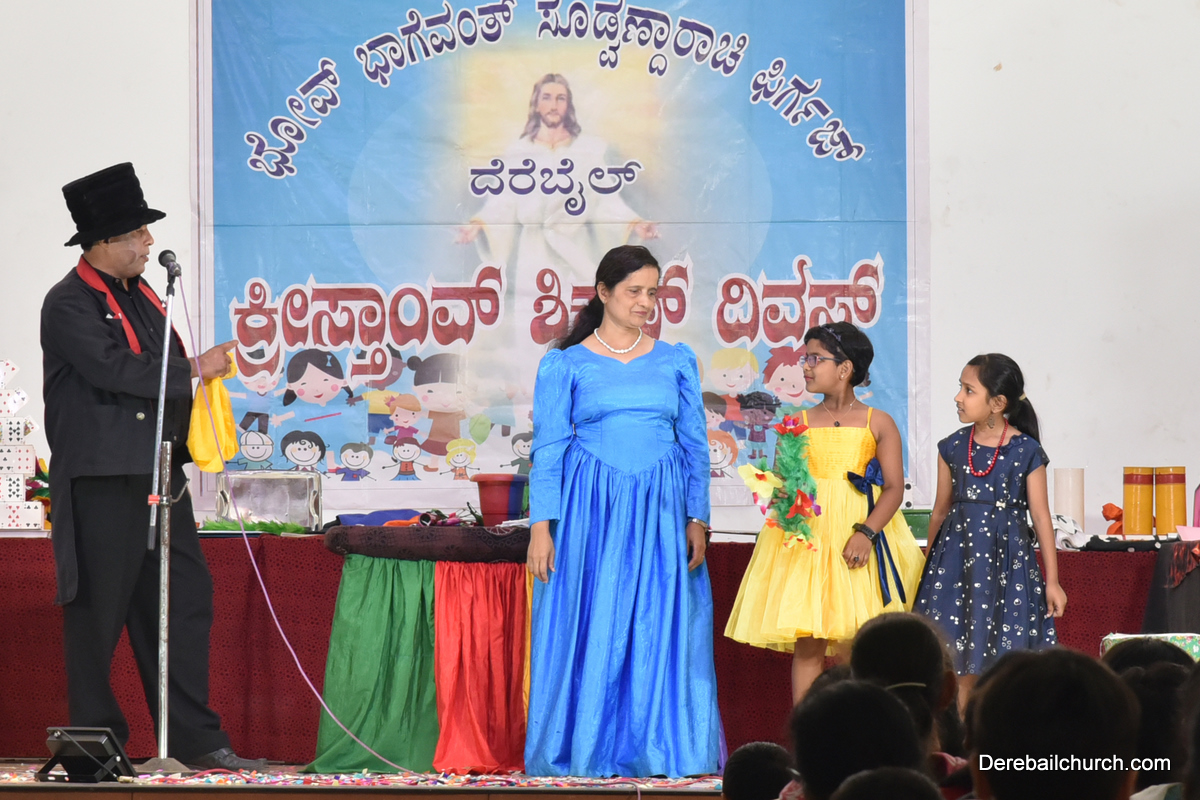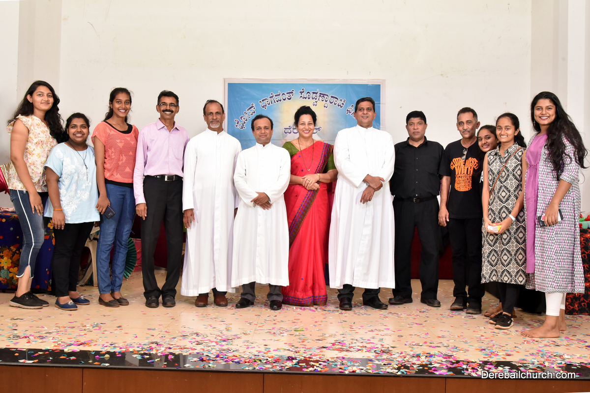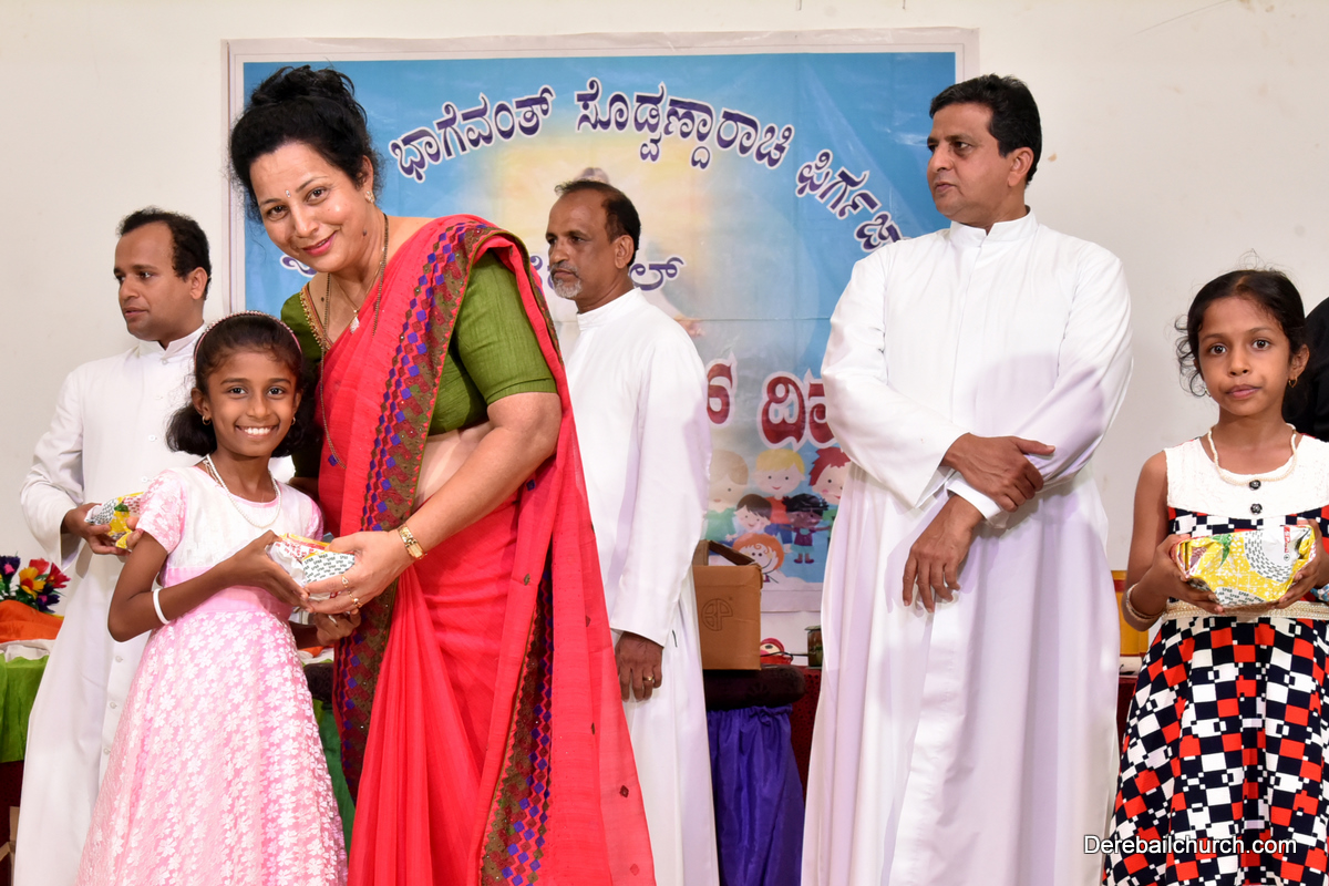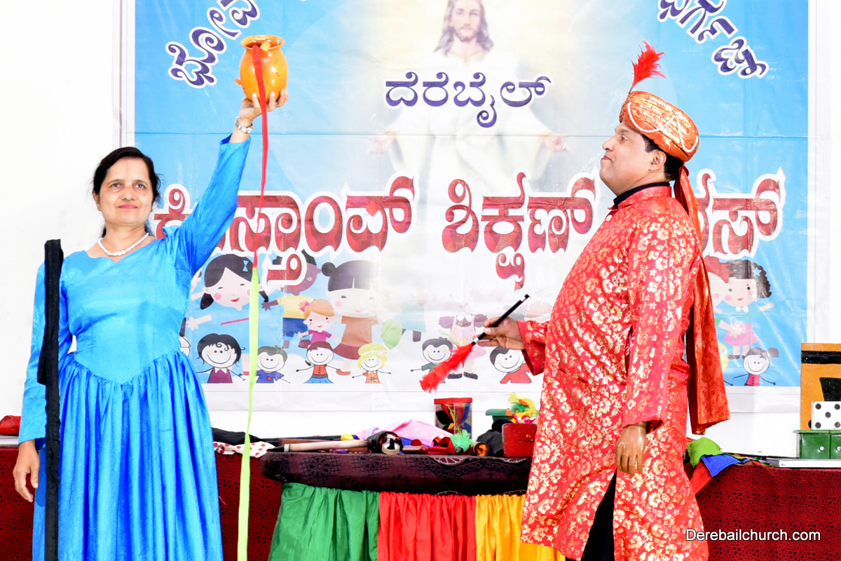 The cultural programme was organised in the Parish Hall at 3.30 PM. The programme began with a prayer song sung by the catechism teachers. Fr.Gratian welcomed the gathering. A Bible magic show was presented by Fr Ivan Madtha and his sister Sr. Doris. Amisha Rodrigues, Christon Menezes from Ycs and Brayan Mendonca of 10th Std shared their experience of Sunday catechism. Mrs Sharmila Mascarenhas on behalf of the teachers shared the beautiful experience of teaching Sunday Catechism to the Children. Fr Austin addressed the gathering and appreciated the parents and children for their whole hearted cooperation in the mission of Sunday catechism.  The dignitaries present on the Dias were Fr Austin Peres Parish Priest, Fr Gratian Alvares Residential Priest, Fr Gerald Pinto Residential Priest, Mrs Sheela D'Souza the Vice president of Parish Pastoral Council,  Mr Gaulbert Pais the Secretary of Parish Pastoral Council, Fr Ivan Madtha and Mr. Edward Coelho Catechism Coordinator. The prizes were distributed to the children for excelling in catechism exam, full attendance and for workbook.As a part of encouraging the little children to sacrifice and make their contribution to misson Sunday a collection box was allotted to every child. These boxes were returned with the offerings of the little children. Special prizes were given to the children who had collected the maximum amount. Catechism teachers were also felicitated for their selfless service on Sunday's for teaching students. Miss Anu D'Silva compered the programme and Mr Edward Coelho proposed the vote of thanks. The programme concluded with a hymn.