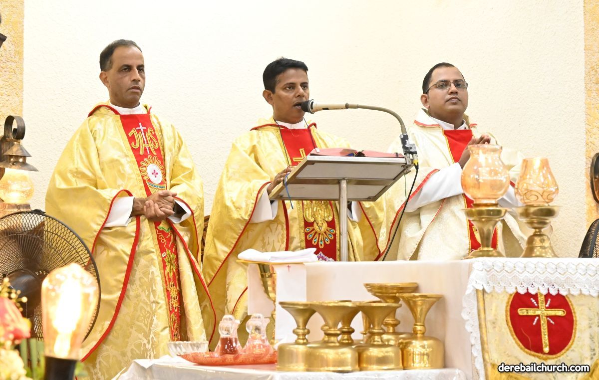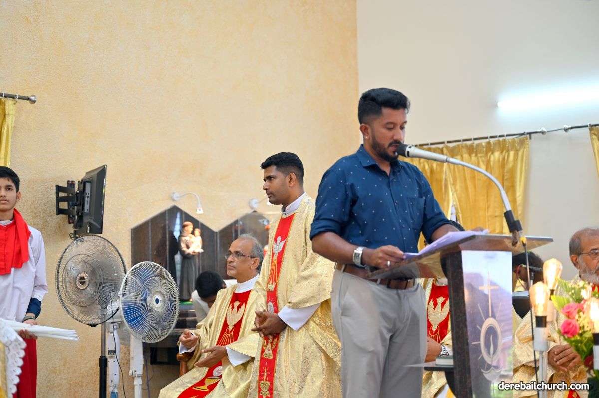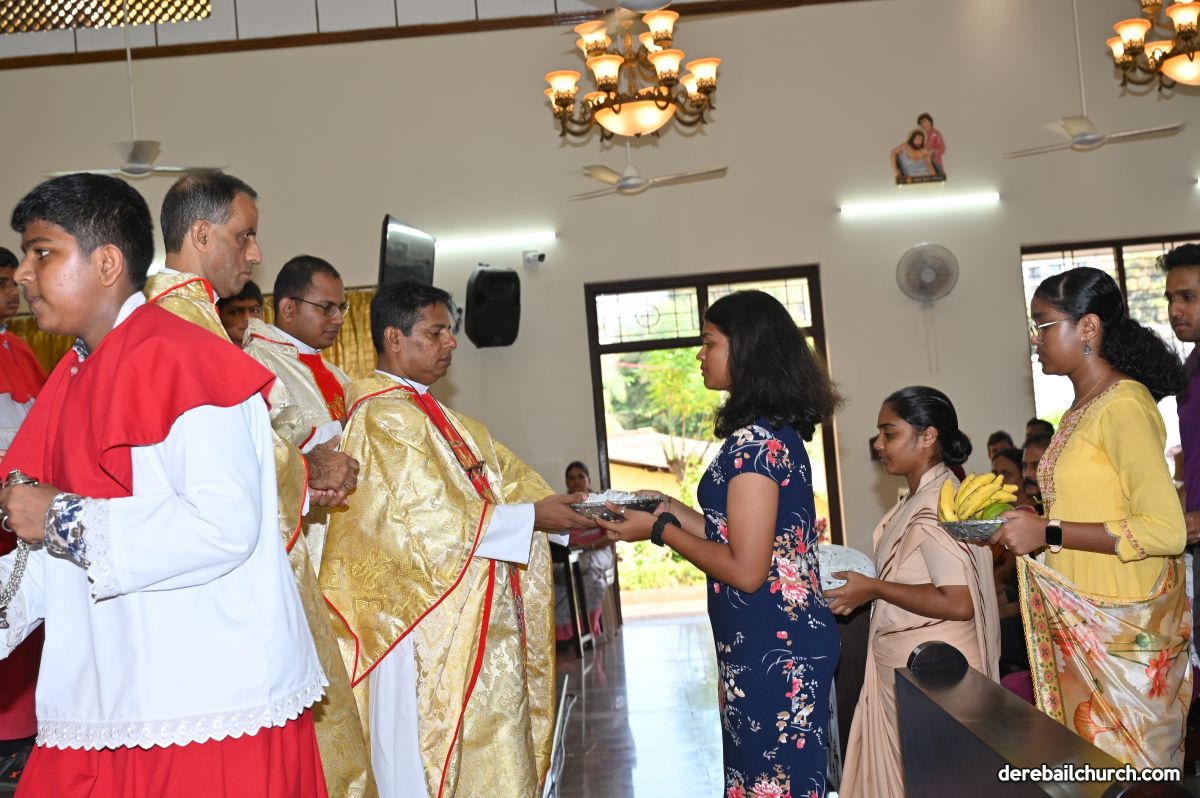 Rev. Fr. Praveen Leo Lasrado Secretary, Catholic Educational Board, Diocese of Mangalore celebrated the Solemn Festal Mass along with Rev. Fr. Joseph Martis, Parish Priest and Rev. Fr. Kevin D’souza, Assistant Parish Priest of Derebail Parish. Rev. Fr. Gerald Pinto, Rev. Fr. Conel Correa, Rev. Fr. Stephan Pereira, Rev. Fr. Deep Fernandes, Rev. Fr. Thrishan D’souza and others graced the Holy mass as concelebrants.