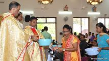 Rev. Fr. Praveen Leo Lasrado distributed the “Candle of Honour ” to all the parishioners who had contributed towards the expense of the feast and had given Muddhoms.