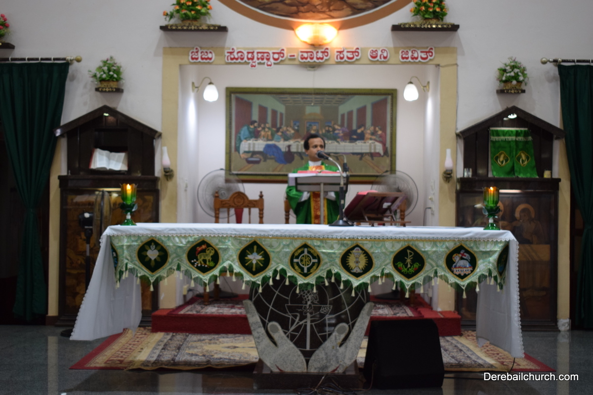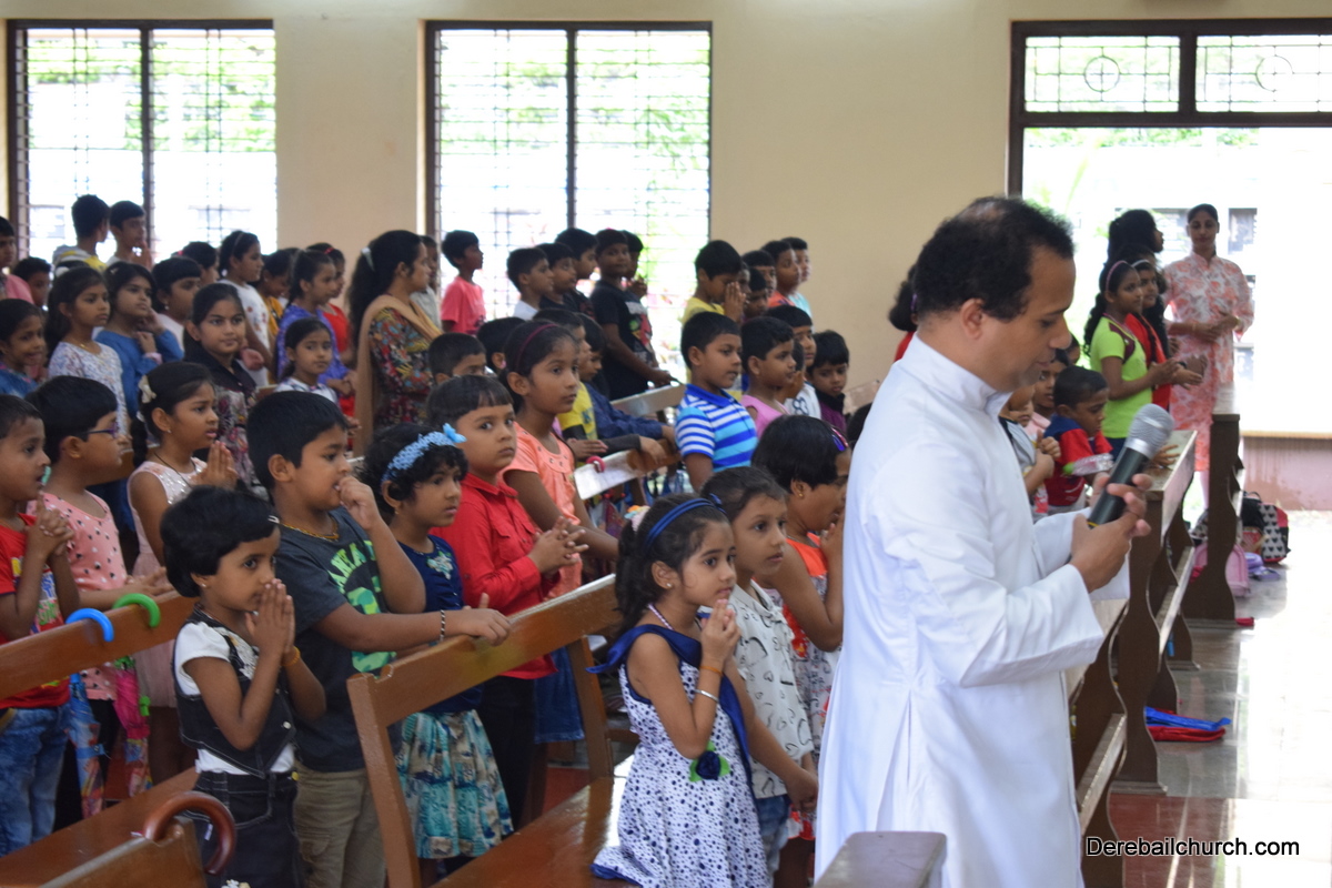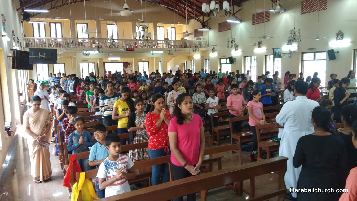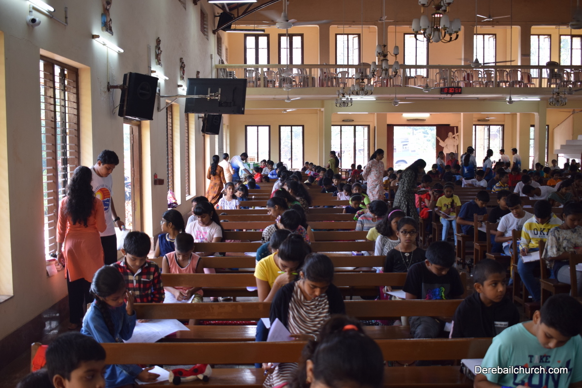 Derebail parish observed Bible Sunday on 11th of August for all children. On this occasion Christian Life Community- Youth Unit, conducted Bible Quiz for classes from std 4 to YCS. The Quiz was followed by a powerpoint presentation on The Bible and Its importance by Fr. Gratian Alvares. Bible Sunday concluded with a Holy Mass celebrated by Fr. Gratian Alvares. Around 218 participants took part in Bible Quiz.