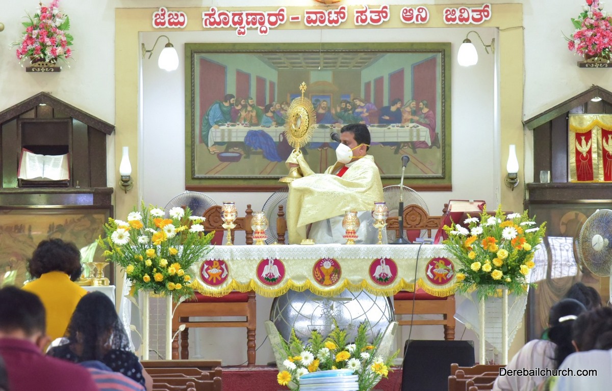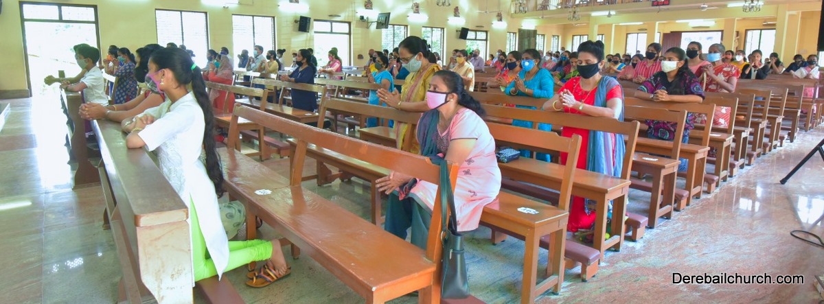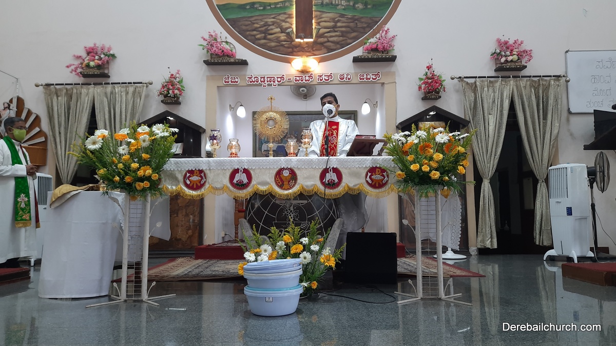 As preparation for the Parish feast at Most Holy Redeemer Church, Derebail, the Confraternity Sunday was observed on the 25th of October, 2020. In order to facilitate the participation of many parishioners in this solemn ceremony keeping in mind the Covid protocol, four Holy masses were celebrated at 7 AM, 8.30 AM, 9 AM, and 11:30 AM.