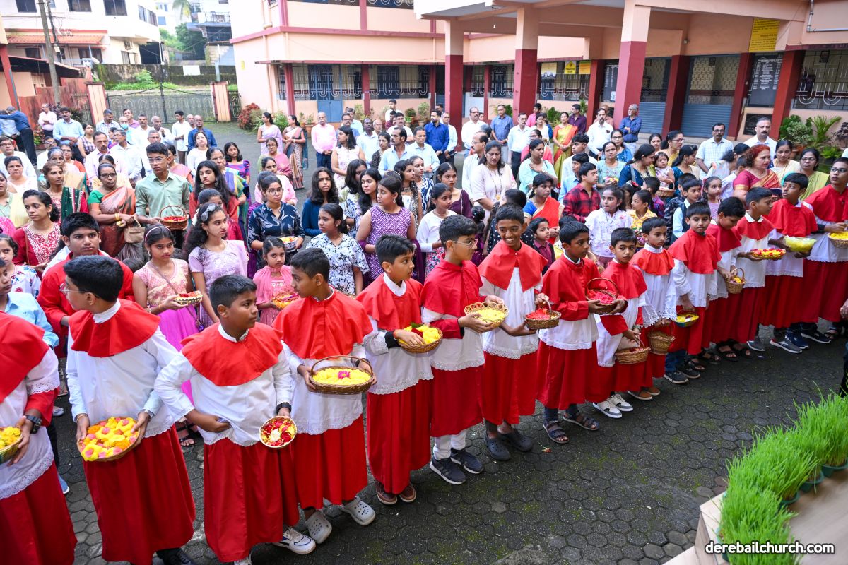 The feast of Nativity of Mother Mary was celebrated with devotion and grandeur at Most Holy Redeemer Church Derebail. In preparation for this feast the parishioners- young, old, especially little children- participated in the nine-days novena, offering flowers to Mother Mary with love and reverence.