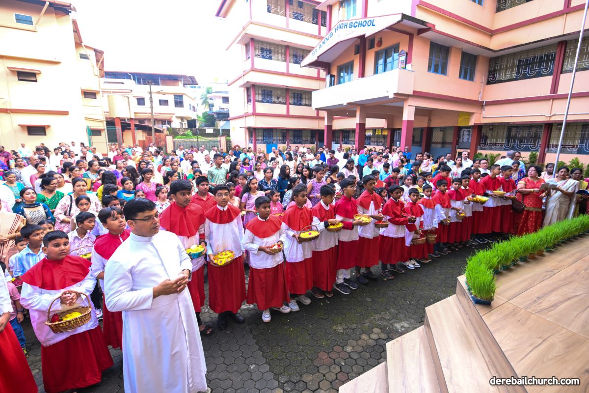 On 8th September, 2025 the celebration commenced at 7.30 am in front of St Ann's English Medium School, Kuntikan, with the blessing of the newly harvested corn. This was followed by a ceremonial procession to the church, with little children strewing flowers all along the way. The statue of infant Mary was brought in this procession to the church along with the newly harvested corn and with the music of the brass band.
