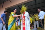 In his Homily, Fr. Santhosh Rodrigues highlighted the spiritual significance of the day by drawing attention to Mother Mary's role in Christian life. He invited the faithful to take four symbolic flowers—gratitude, humility, patience, and kindness—from Mary’s garden to enrich their lives as Catholics. Further, he elaborated on how Nativity as a feast of the family should motivate one to dine and pray together. As Nativity is also a feast that celebrates harvest of new crop, Fr. Santhosh recollected the efforts of the farmers and emphasized the need to be grateful for God's blessings.