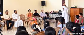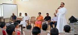 The main resource team for the camp was from the Missionary Families for Christ (MFC). The program commenced with a prayer song, followed by a warm welcome from Ms. Pramila Furtado. The lamp-lighting was conducted by Fr. Joseph Martis, the Parish Priest, along with Fr. Kevin D’Souza, the Associate Priest, Mrs. Sheela D’Souza, Vice President, Mr. Denzil Pinto, Secretary, Mr. Anil Patrao, Convener of the 21 Pastoral Commissions, and Mr. Cyprian D’Souza, the Sanchalk of the Family Commission.