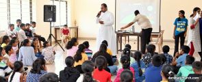 A camp for school children from 4th to 9th grade was held at the Derebail Parish Hall on Friday, October 11th, from 9:00 AM to 4:00 PM. The event was organized under the leadership of the Commission for Family, with approximately 110 children in attendance.