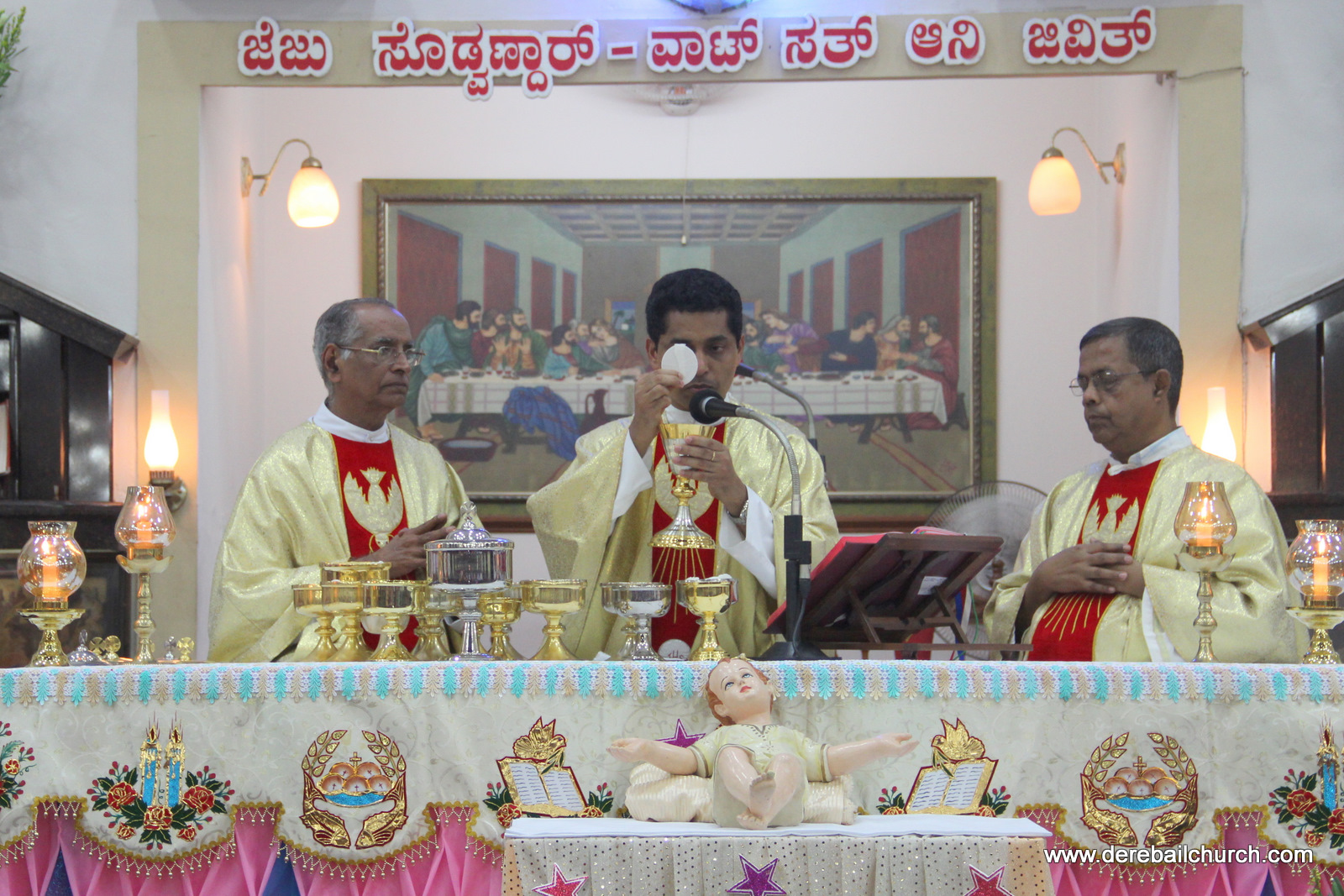 The birthday of our Lord was celebrated with glory and devotion here in the parish of Derebail. The celebration began with the Christmas Carol lead by the Children's choir group and followed by the Solemn Eucharistic Celebration. Rev Fr Anil Lobo, the Asst Parish Priest presided over the Eucharist. Rev Fr Vincent Menezes, administrator of the parish preached the homily. Rev Fr Walter, the retired priest of our parish con celebrated. Over 2000 people attended the mass. After the mass some games, auctions and entertainment program were conducted by YSD and doubled the season's joy.