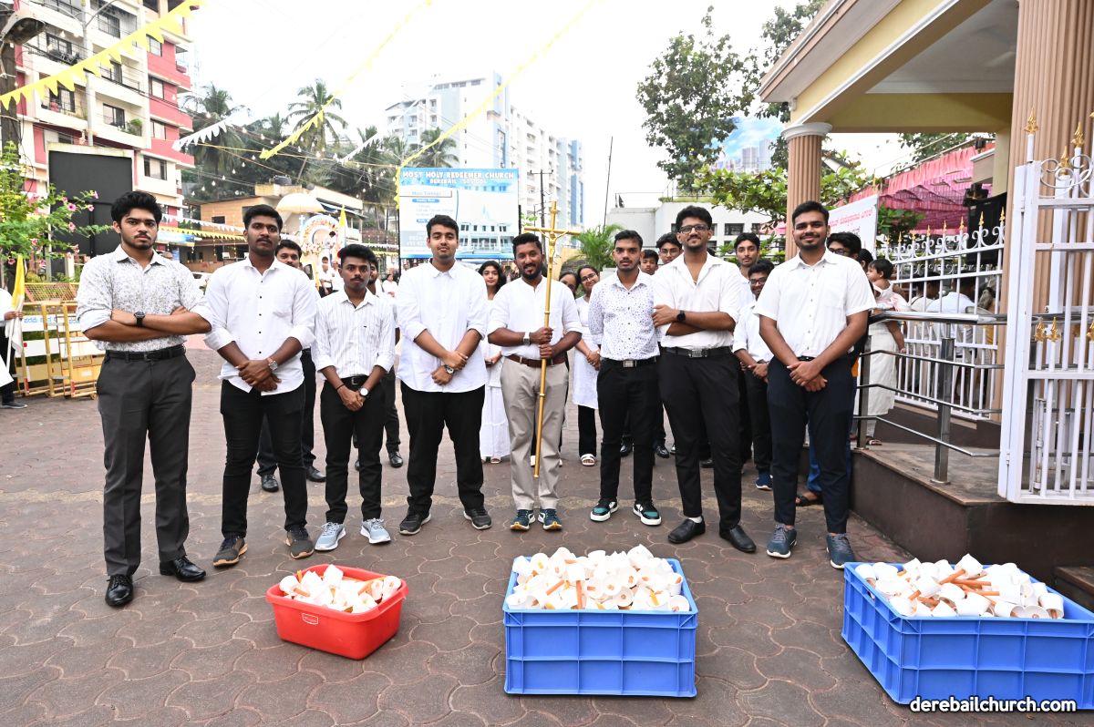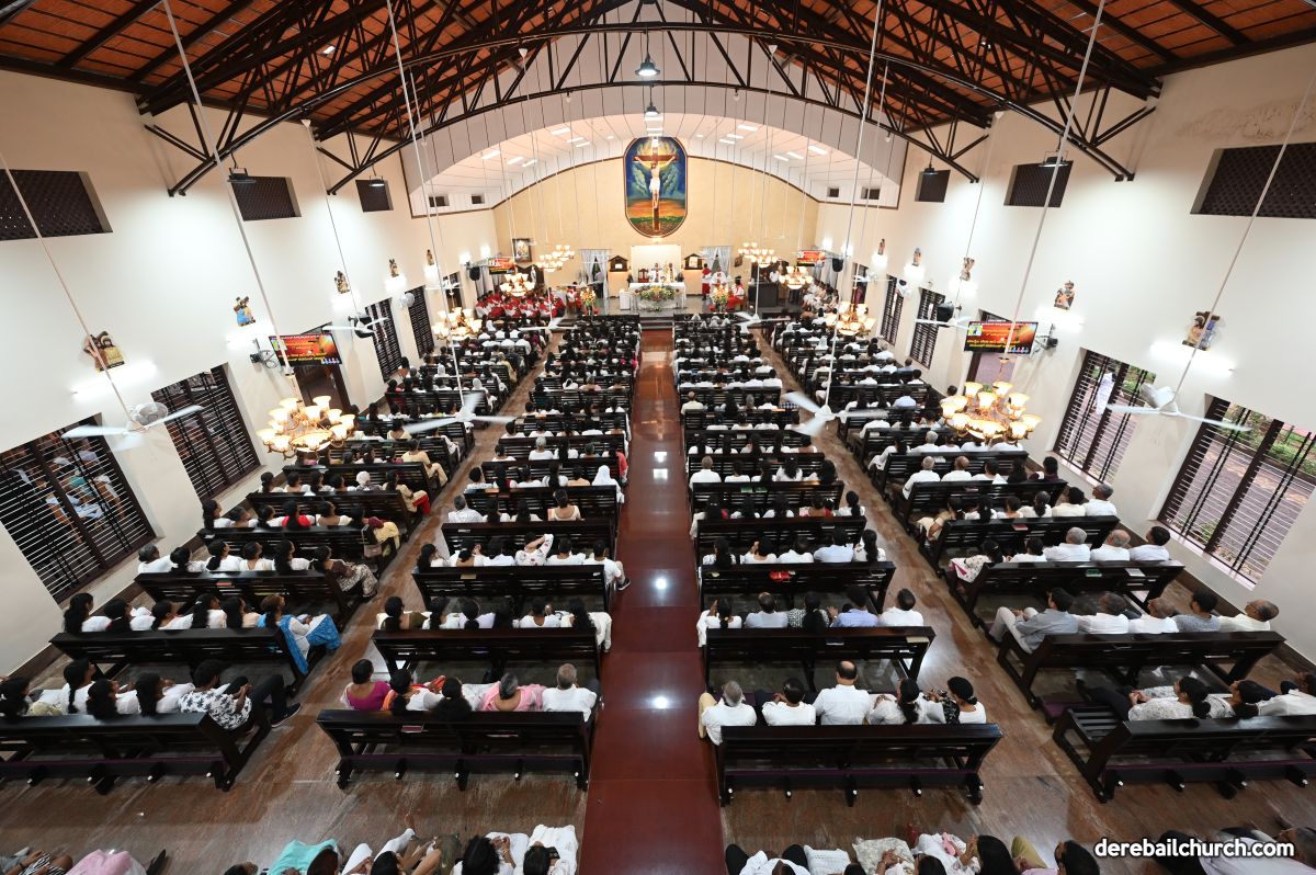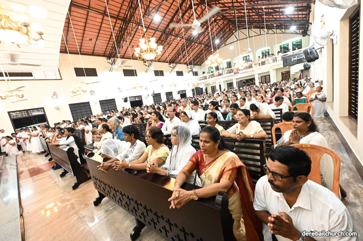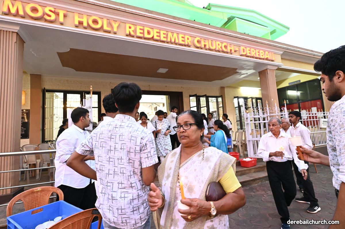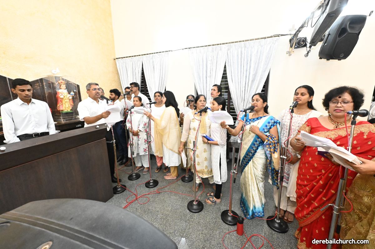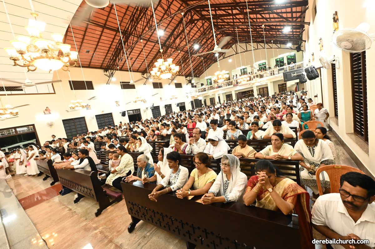 In his closing remarks, Rev. Fr. Joseph Martis thanked Rev. Fr. Denis D'Sa, the parishioners, parish associations, and the youth of Derebail for their enthusiastic participation. The Kannada commentary during the procession was provided Ms. Monti Andrade