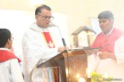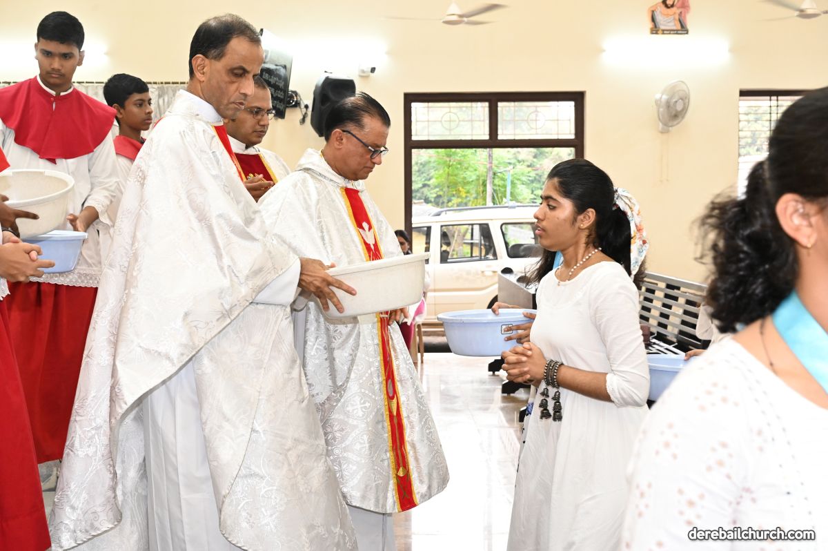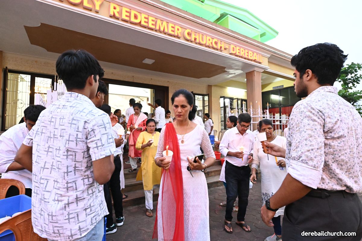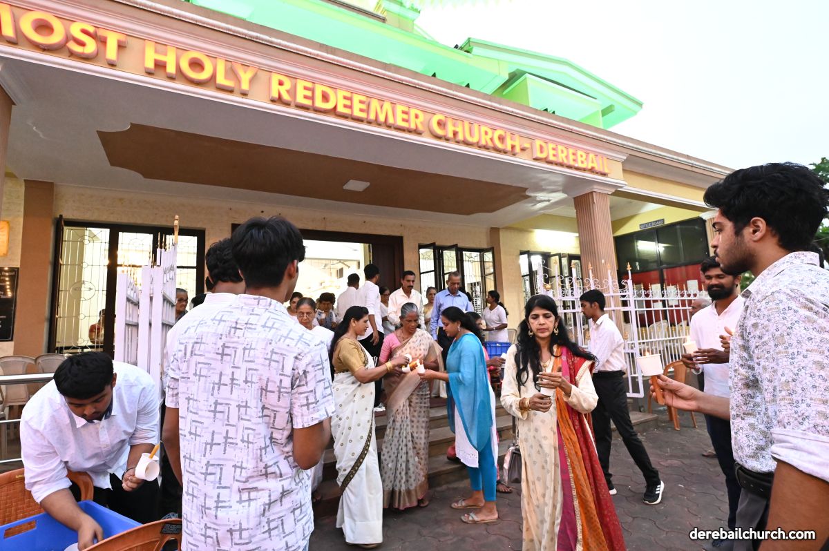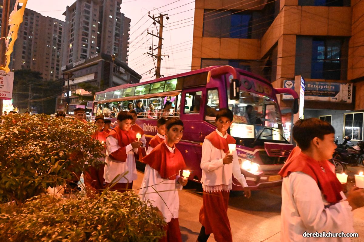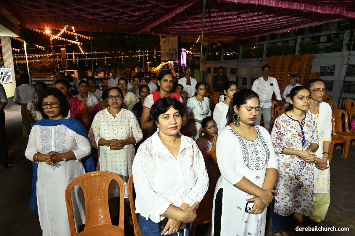 In his closing remarks, Rev. Fr. Joseph Martis thanked Rev. Fr. Denis D'Sa, the parishioners, parish associations, and the youth of Derebail for their enthusiastic participation. The Kannada commentary during the procession was provided Ms. Monti Andrade
