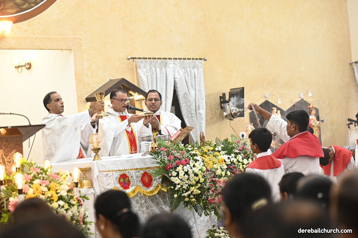 Derebail Parish observed Confraternity Sunday, 27 October 2024 with a Eucharistic Celebration at 4:30 pm, led by the main celebrant, Rev. Fr. Denis D'Sa, the Parish Priest of Thotham, with Rev. Fr. Joseph Martis, the Parish Priest and Rev. Fr. Kevin D'Souza, Associate Parish Priests as concelebrants.
