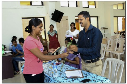 Dhonu-an exclusive stage for the expression and presentation of mutiple folds of talents. The exclusive vividity in the talents that the Most Holy Redeemer parish holds was exhibited in the 11 competitions organized by the YSD (Yuva Spandan Derebail) on the 30th of November. Competitions like Collage making, Wealth out of Waste, Rangoli, Drawing, Devotional hymns recital, Narration of Biblical Stories, Extempore, Turn Coat, Flower Arrangement, Face Painting and Poetry writing drew the attention of many parishioners. The competitions commenced at sharp 9 am and came to a smooth closure at about 5 in the evening. Over 250 parishioners participated in these competitions with great enthusiasm.
