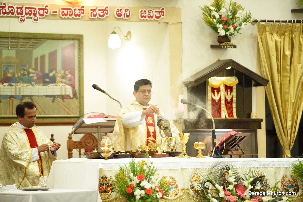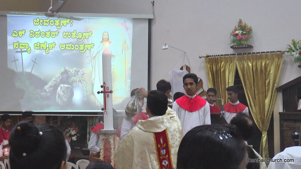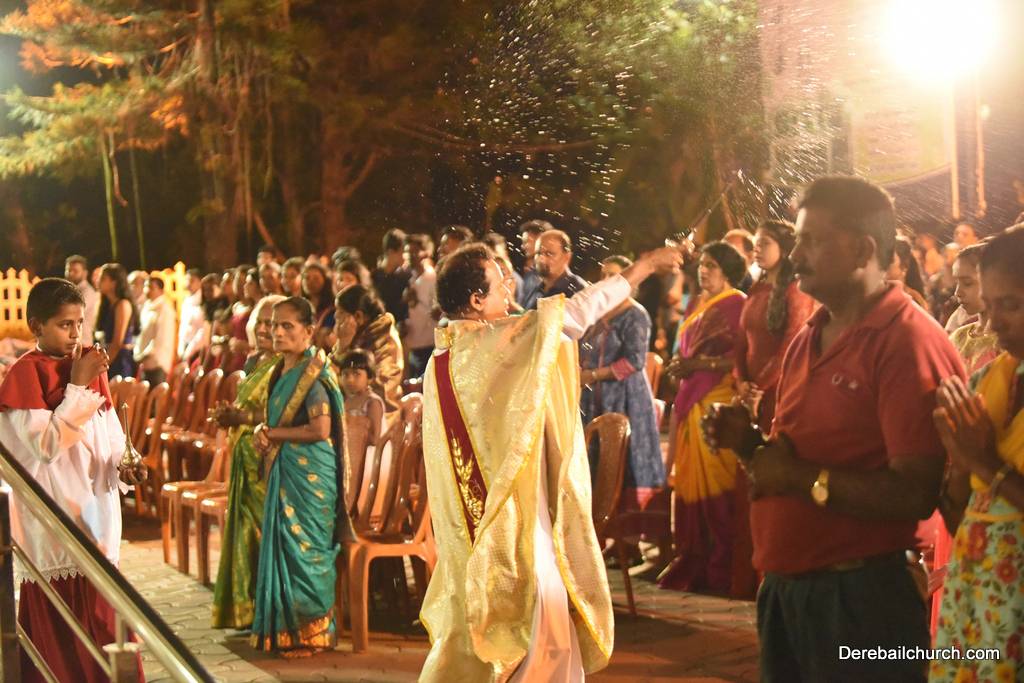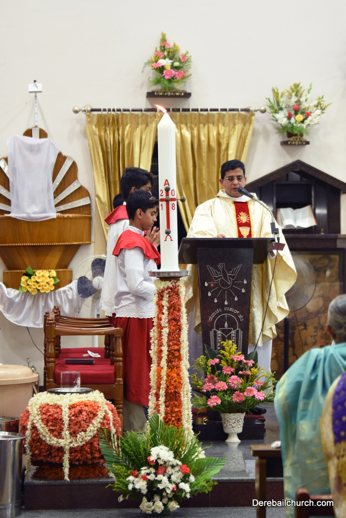 Easter is most important for Christians as it commemorates the resurrection of Jesus Christ. The Easter vigil at Most Holy Redeemer Church began at 7.30 PM on Saturday and the celebrants were Rev Fr. Austin Peres and Rev Fr.Gratian Alvares. The Easter vigil consists of 4 parts.