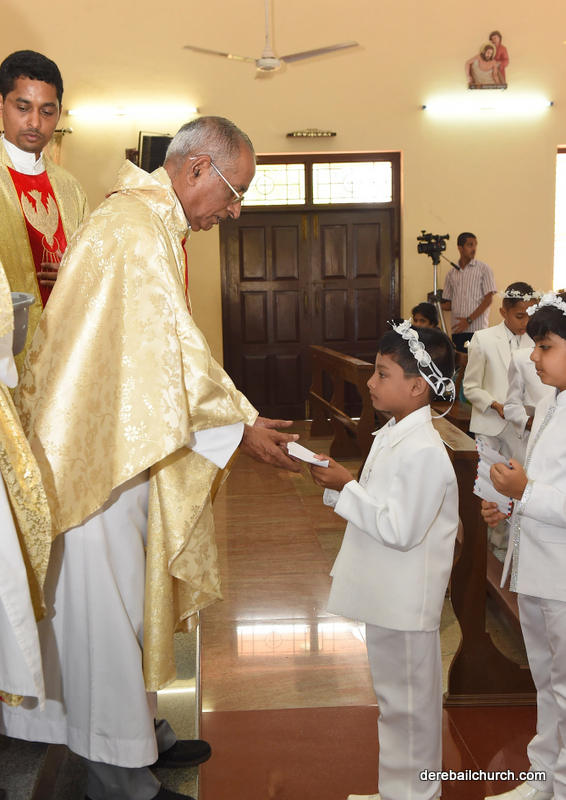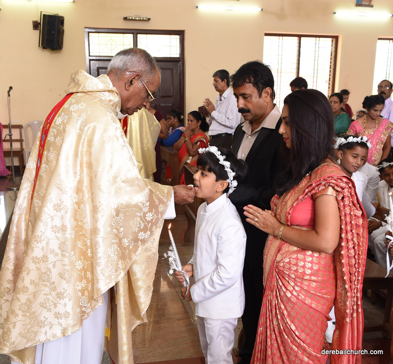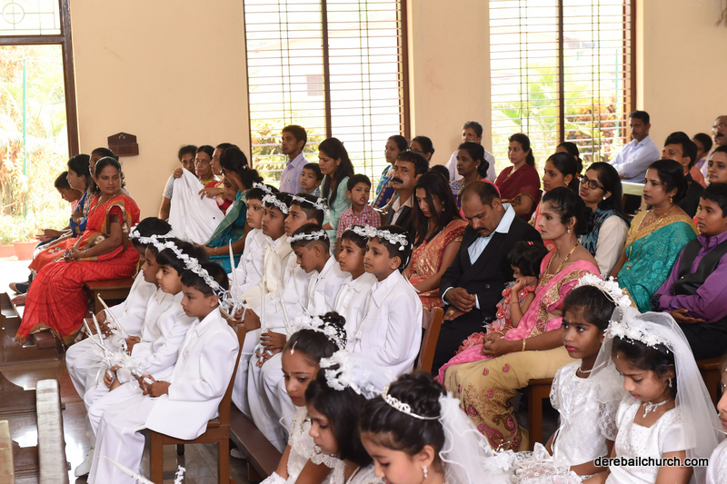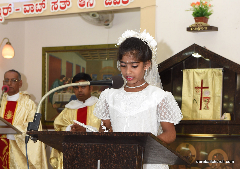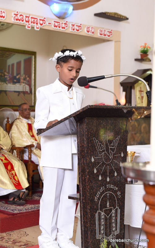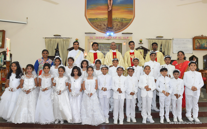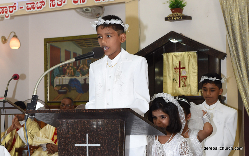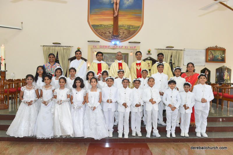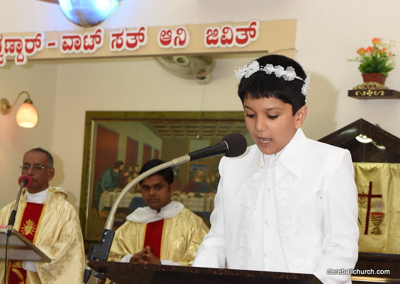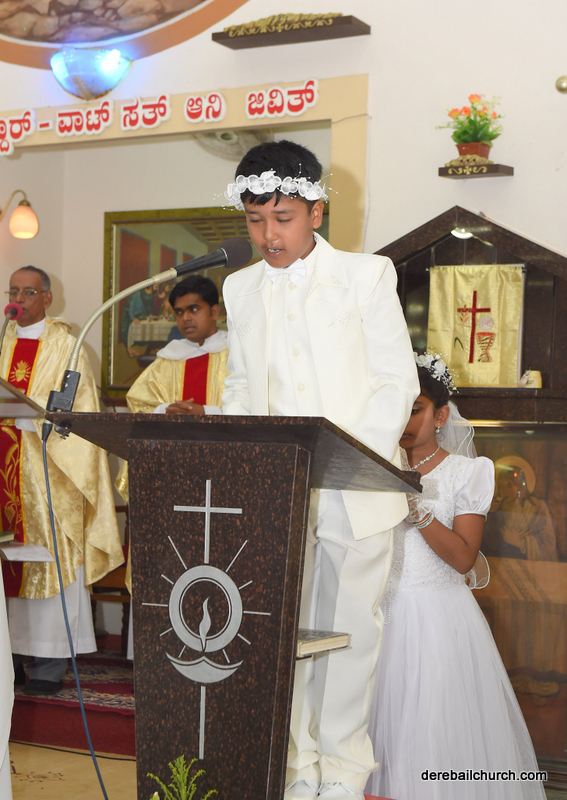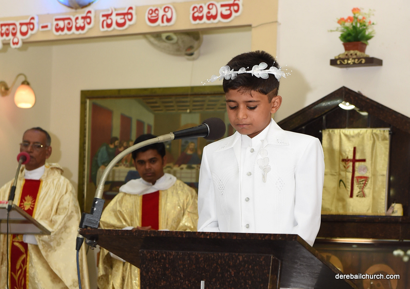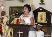 The First Holy Communion ceremony for 20 little children of the Parish was held on the 1st of May 2016 during the 09:15 AM mass. After a lot of preparation to receive Jesus in their hearts the little children looked excited and happy. Rev Fr Vincent Menezes, the Parish Priest was the Main Celebrant of the mass; the co-celebrants were Rev. Fr. Walter Pinto, Rev. Fr. Prakash Menezes, Rev. Fr Arogya Britto, Deacon Steeven and Rev.Fr. Anil Lobo, the Assistant Parish Priest.