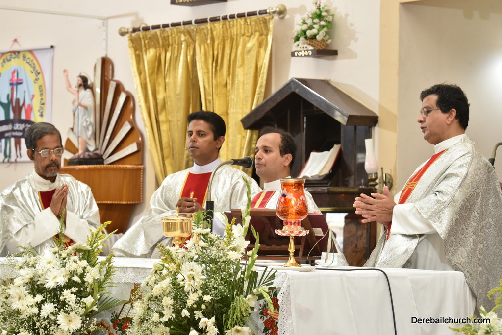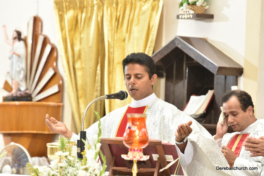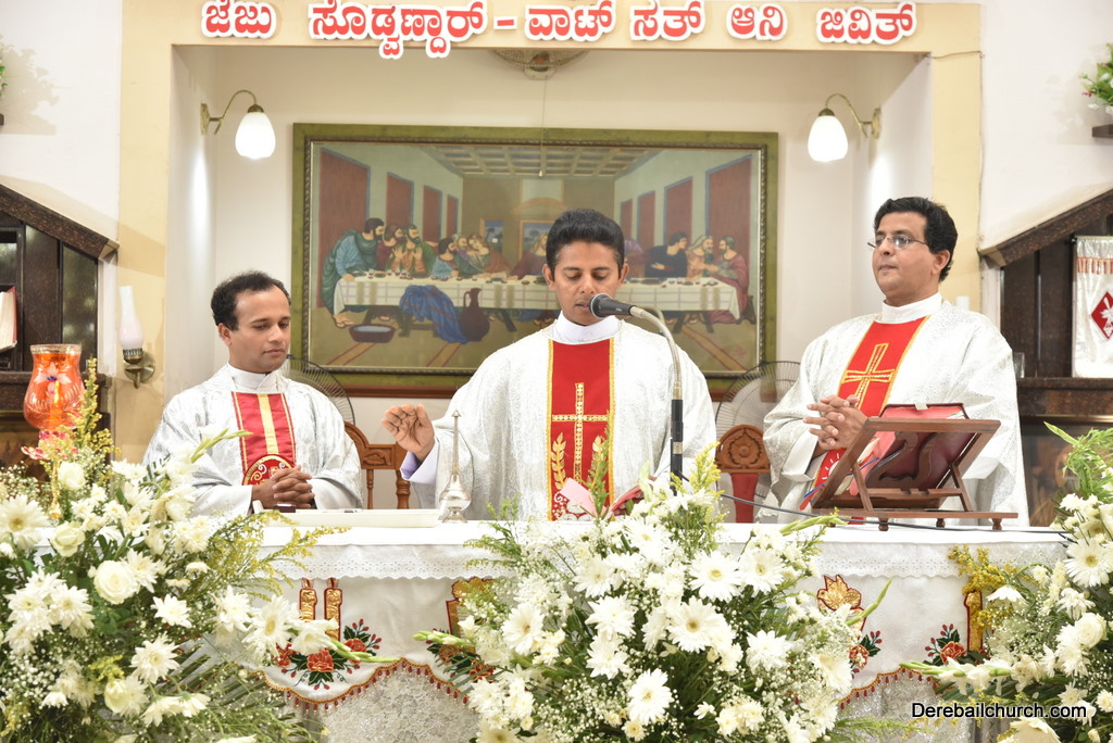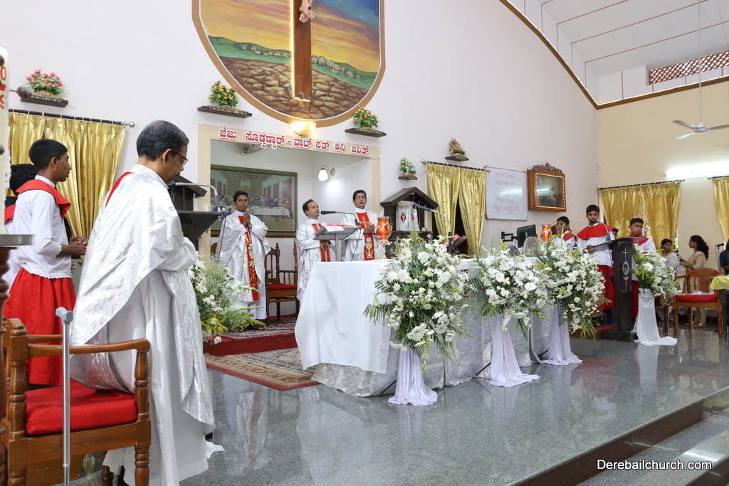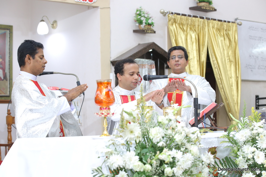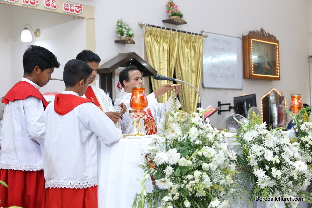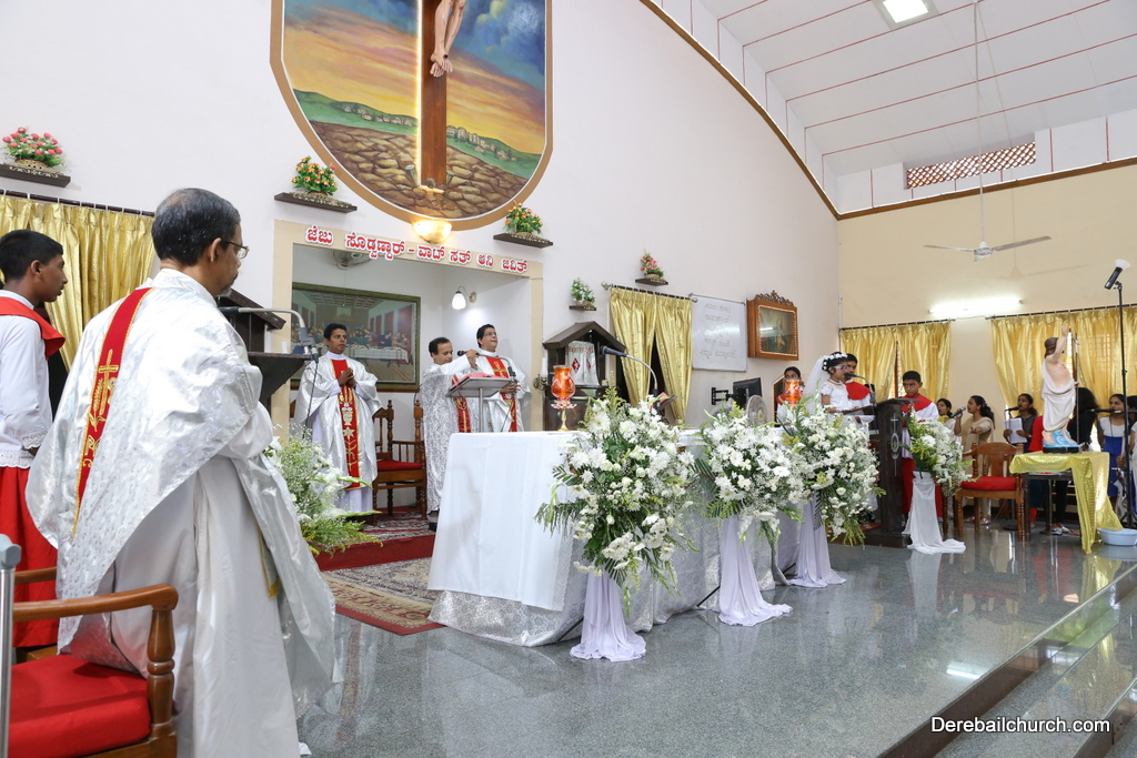 Rev. Fr Gratian Alvares was the main celebrant, Rev Fr. Austin Peres, Rev Fr. Praveen Leo Lasrado and Rev. Fr .Walter D'Souza were the co-celebrants. In his Homily Fr Gratian emphasized that Jesus is the Bread of Life who comes into our hearts and transforms us. He urged the little children who receive communion to be like Jesus. They were asked to imbibe the virtues of Jesus.