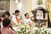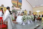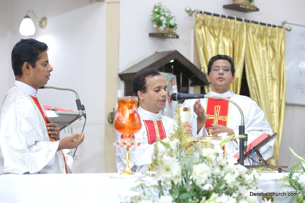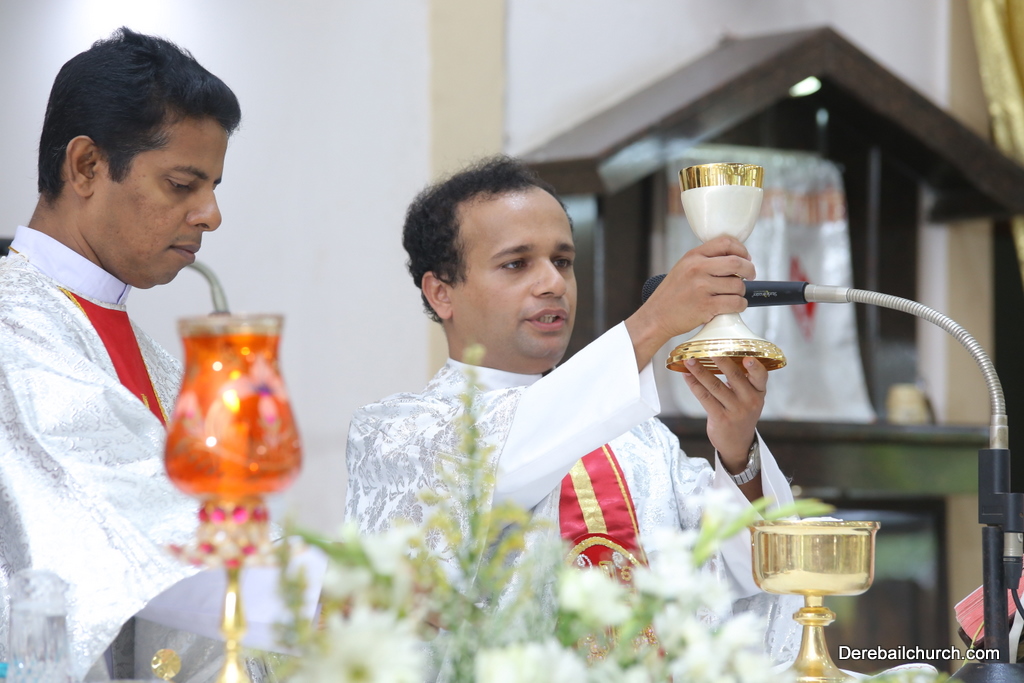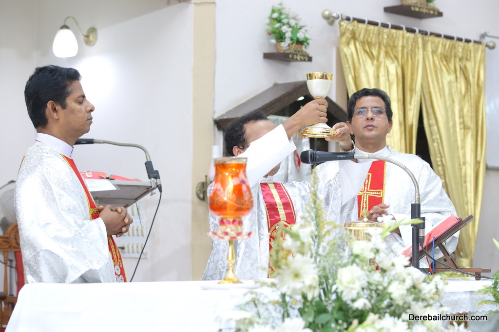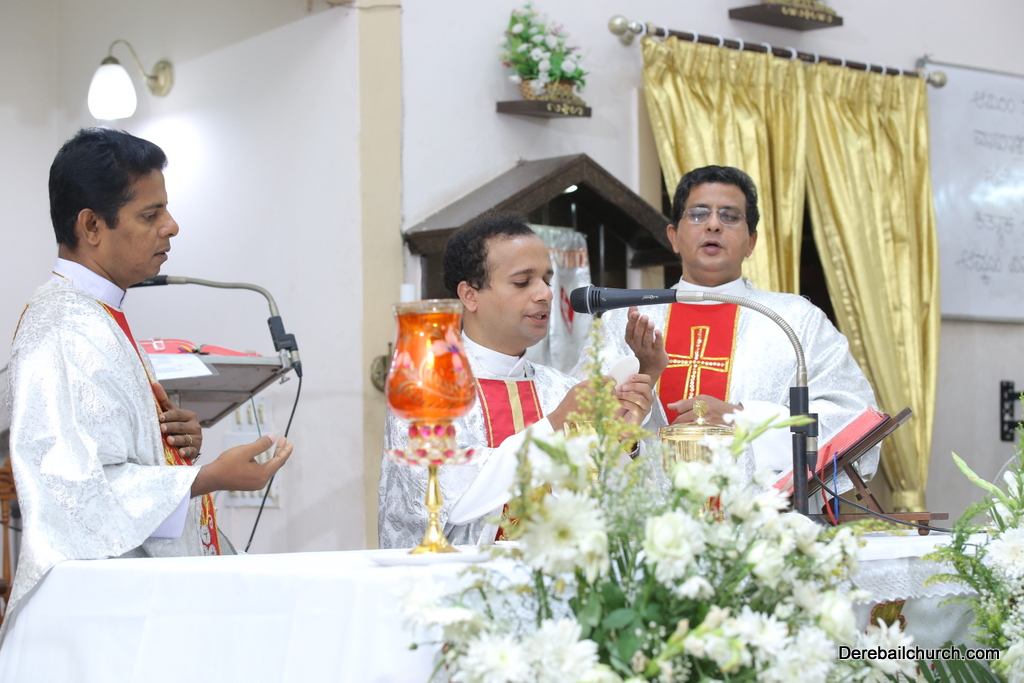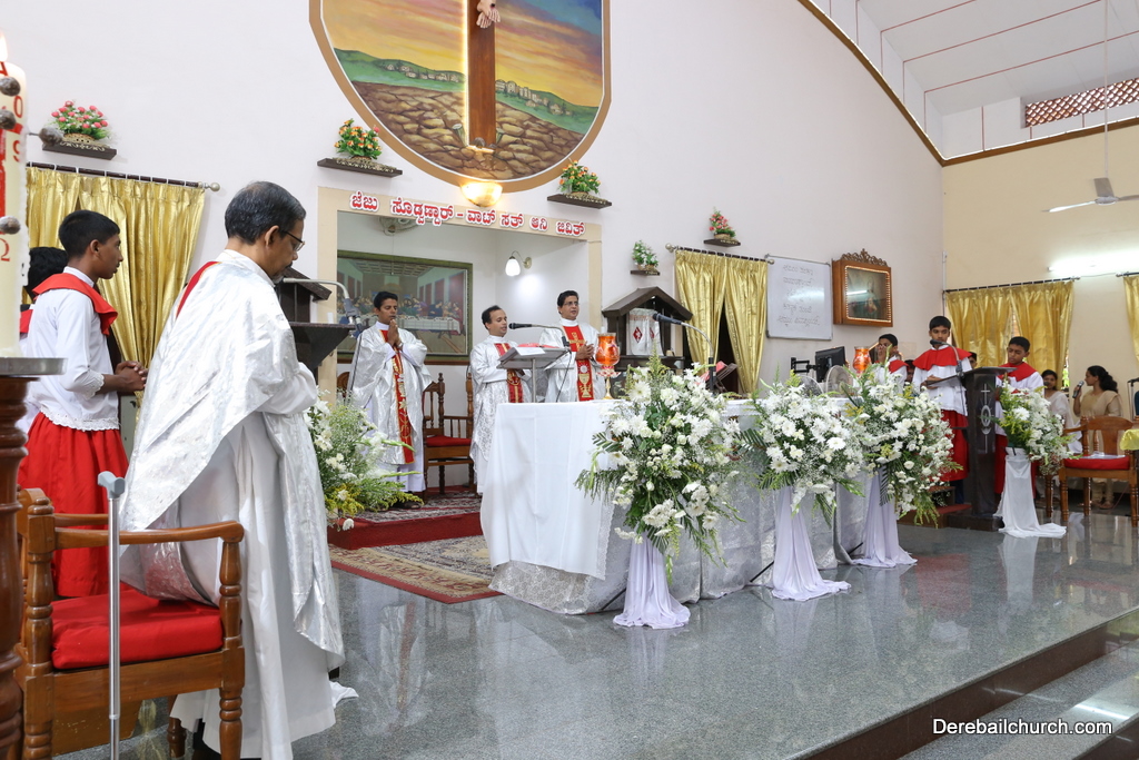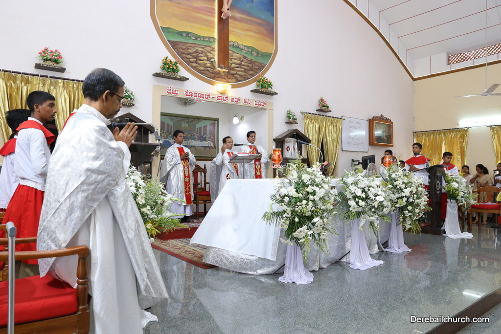 Rev. Fr Gratian Alvares was the main celebrant, Rev Fr. Austin Peres, Rev Fr. Praveen Leo Lasrado and Rev. Fr .Walter D'Souza were the co-celebrants. In his Homily Fr Gratian emphasized that Jesus is the Bread of Life who comes into our hearts and transforms us. He urged the little children who receive communion to be like Jesus. They were asked to imbibe the virtues of Jesus.