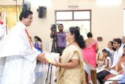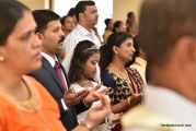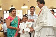 The communicants sang a Thanksgiving hymn. Mrs. Dora Dcunha and Mrs. Pramila Furtado were honoured for training and preparing the children for their special day through catechism classes.