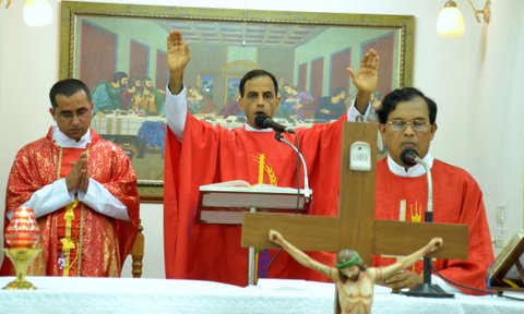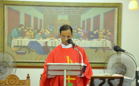 Fr. Joseph Martis in his homily conveyed that the Source of Christ's Passion was his intense love for mankind. The great love of Jesus resulted in his extreme commitment to walk a very precise and narrow path to redeem mankind. For the sake of restoring humans to fellowship with God, he made himself nothing, taking the very nature of a servant by being made in human likeness (Philippians 2:6-7). His passionate love caused him to leave the glory of heaven to take human form and live an obedient life of self-sacrifice required by the holiness of God. Only such a selfless life could produce the pure and innocent blood sacrifice required to cover the sins of those who put their faith in him (John 3:16; Ephesians 1:7). Through his suffering and death on the cross, Jesus freed us from our sins and gave us eternal life. He cleansed us by his blood and continues to do even to this day.