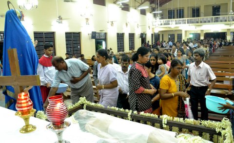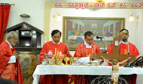 The Good Friday service was held at the Most Holy Redeemer Church, Derebail at 5 PM with Rev. Fr. Peter D’souza - Parish Priest, Fr. Edwin Monis - Assistant Parish Priest, Fr. Joseph Martis - Rector of St. Joseph’s Seminary Jeppu and Fr. Alexander Lobo – Parishioner from Derebail Parish as concelebrants.