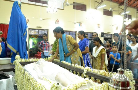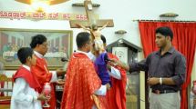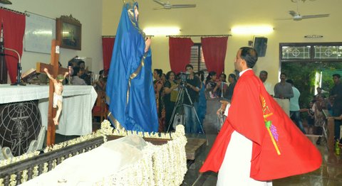 The homily was followed by the Prayers of the Faithful and Veneration of the Holy Cross. After the Eucharist, the symbolic body of the Lord Jesus and his sorrowful mother Mary was brought in a procession to the Church.