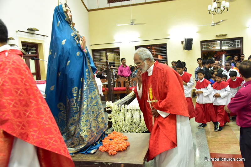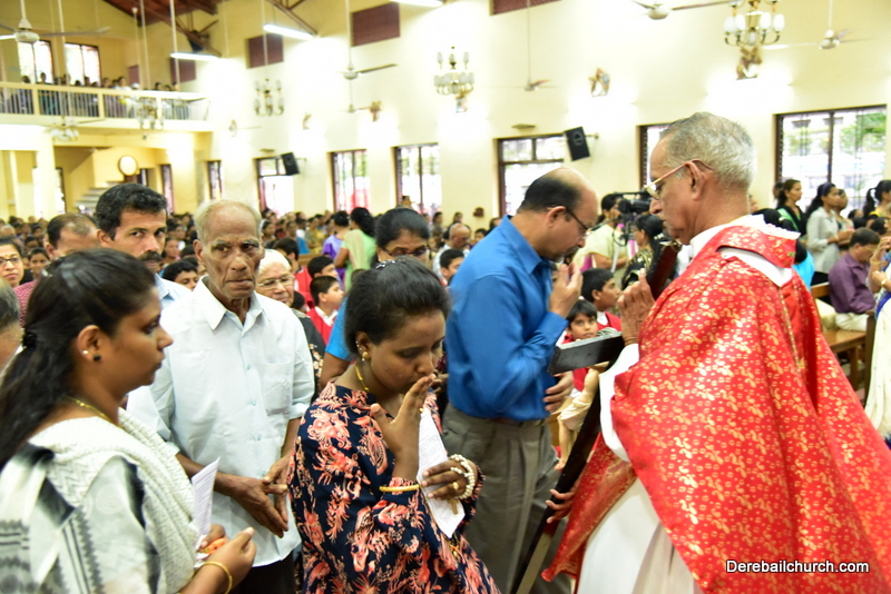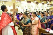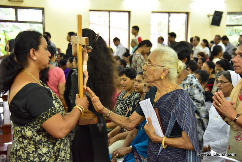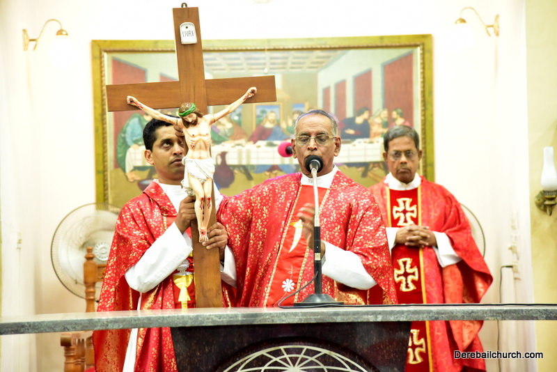 The Good Friday Service at Most Holy Redeemer Church commenced at 5 in the evening. A huge crowd gathered in order to venerate and honour Jesus Christ for embracing suffering and for giving us his selfless love. Rev Fr Vincent Menezes along with Fr. Anil Lobo and Fr. Walter Pinto led the service. Speaking to the Parishioners on this day, Fr.Vincent Menezes conveyed the meaning of true suffering and as to why it is necessary for each of us to accept suffering as god’s will. He quoted the lines by C.S.Lewis which said, “God whispers to us in our pleasures, speaks in our conscience, but shouts in our pains. It is his megaphone to rouse a deaf world.” Man has never been able to fathom the cause of suffering but man has always been able to feel the presence of god in moments of pain.