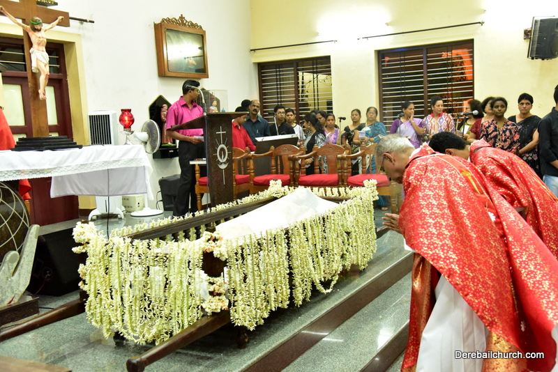 The homily was followed by the Prayers of the Faithful and Veneration of the Holy Cross. After the Eucharist, the symbolic body of the Lord Jesus and his sorrowful mother Mary was brought in a procession to the Church
