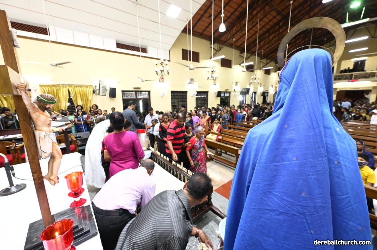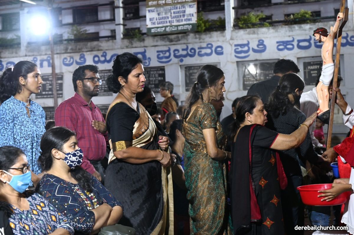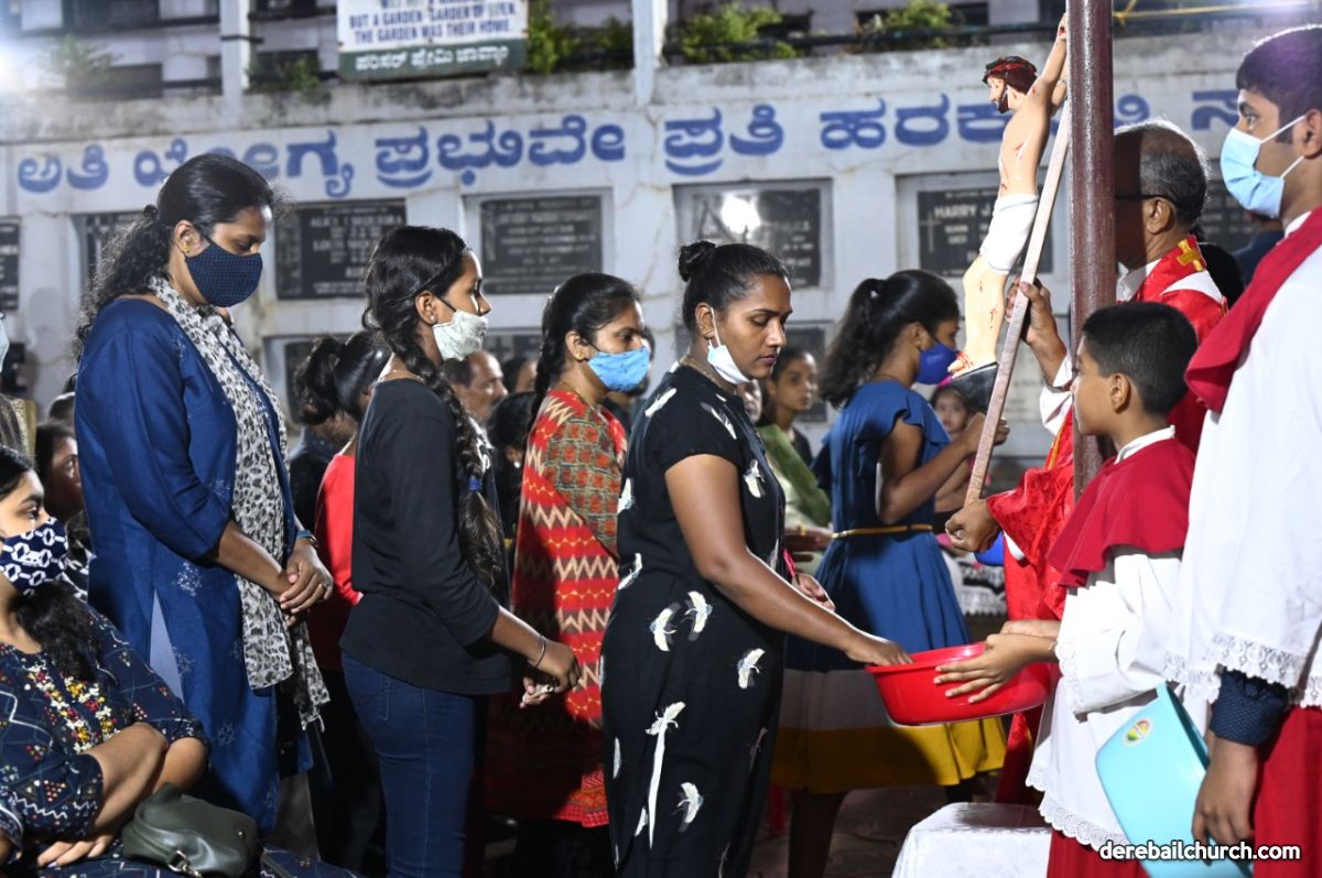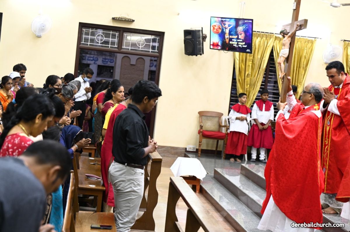 The Good Friday service at Most Holy Redeemer Church Derebail commenced at 5.30 PM. Marked as the day of fasting and penance, Good Friday is a significant day as it commemorates the biggest sacrifice in the history of mankind. It is the day Jesus, God's only begotten son, showed his love for us all through his death on the cross.