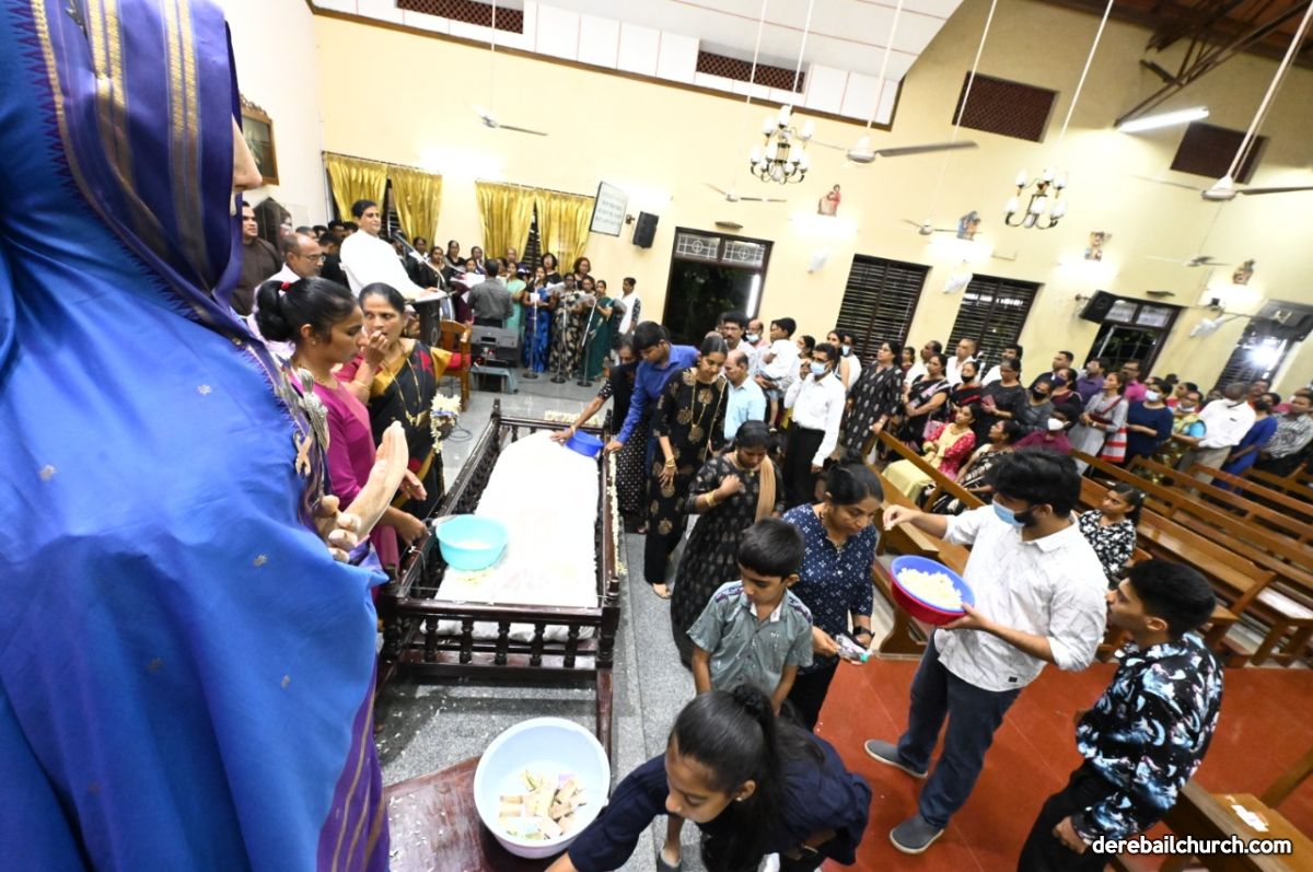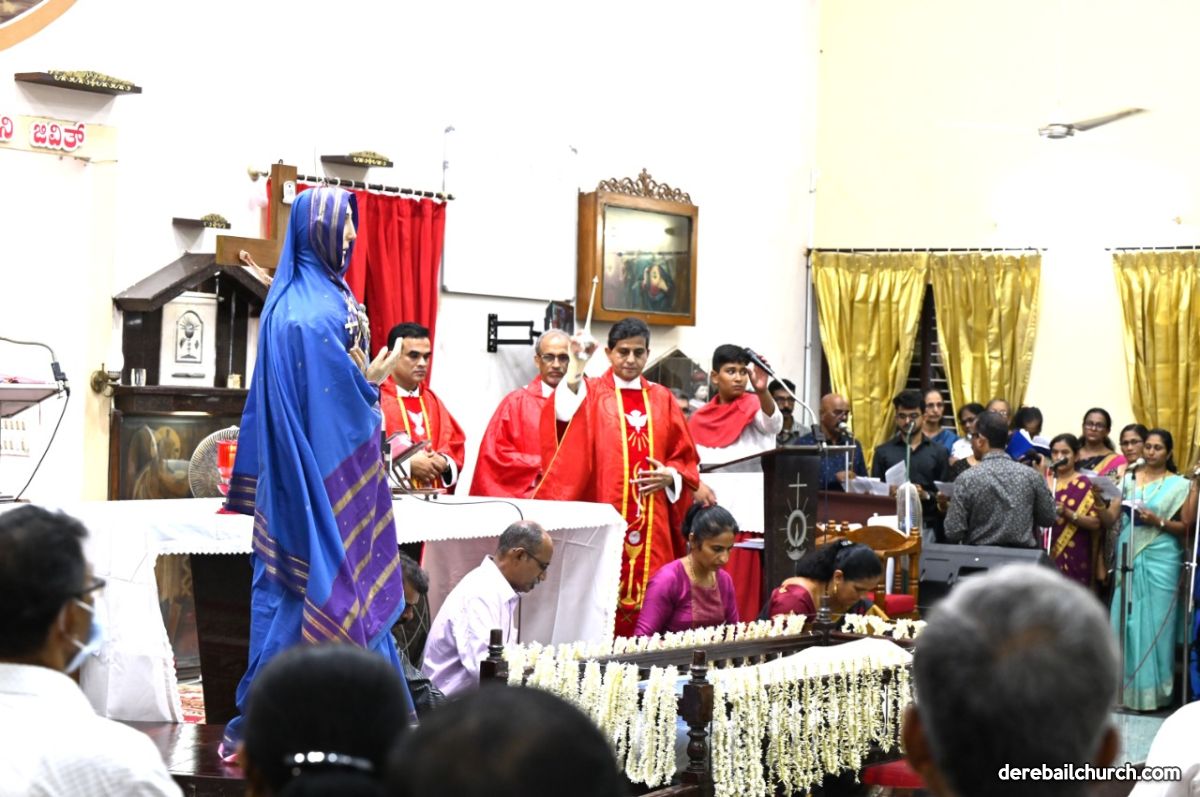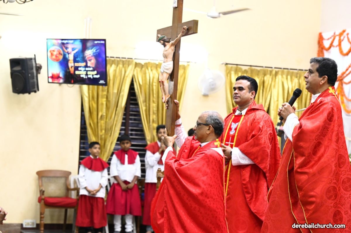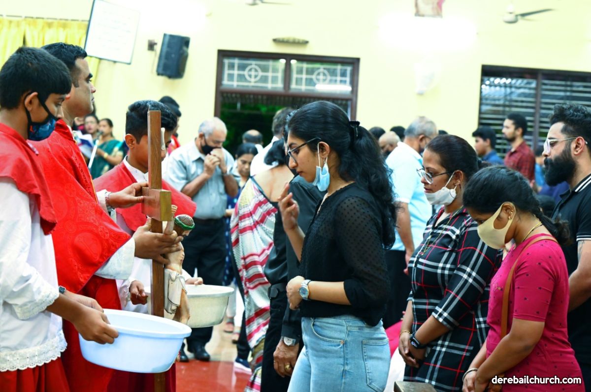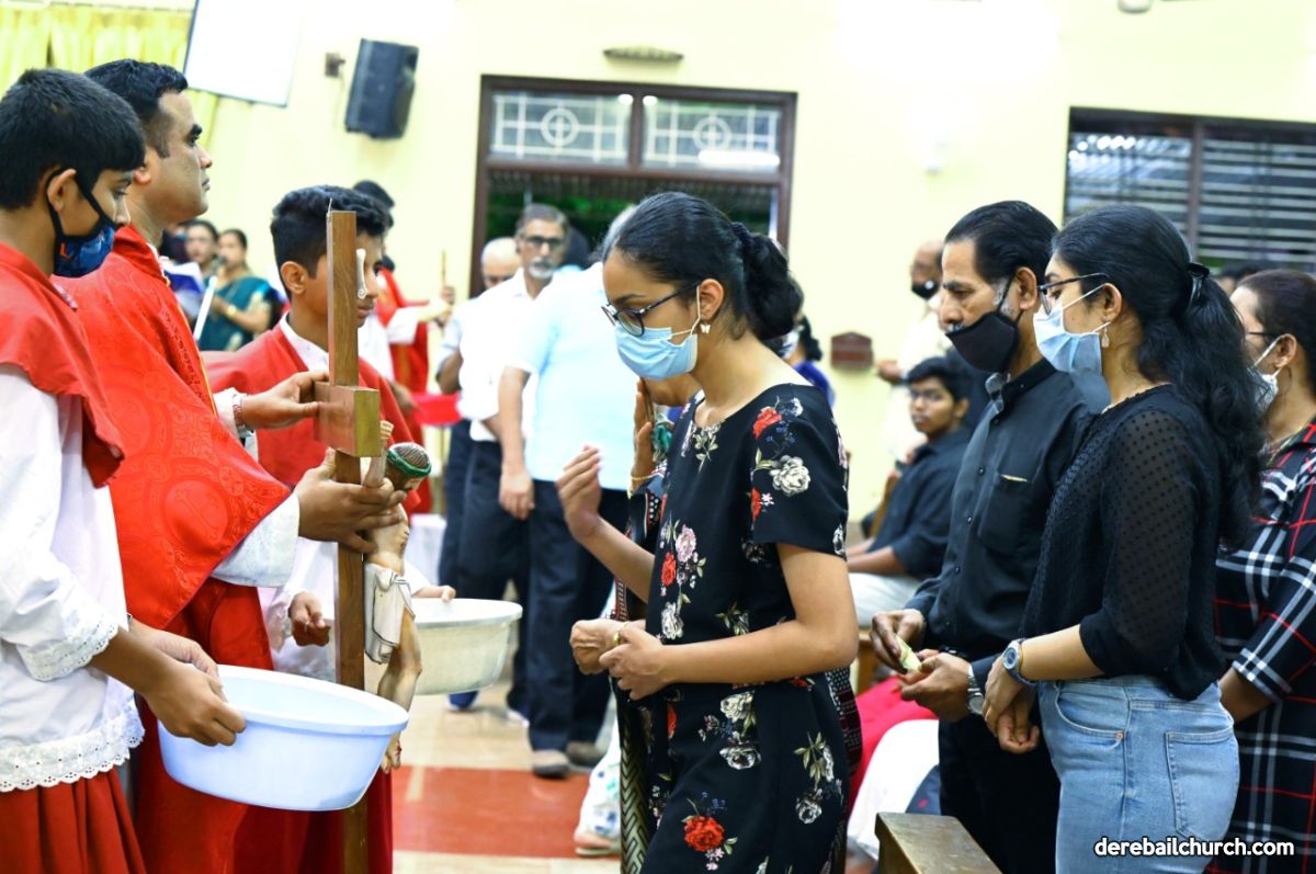 The Good Friday service at Most Holy Redeemer Church Derebail commenced at 5.30 PM. Marked as the day of fasting and penance, Good Friday is a significant day as it commemorates the biggest sacrifice in the history of mankind. It is the day Jesus, God's only begotten son, showed his love for us all through his death on the cross.