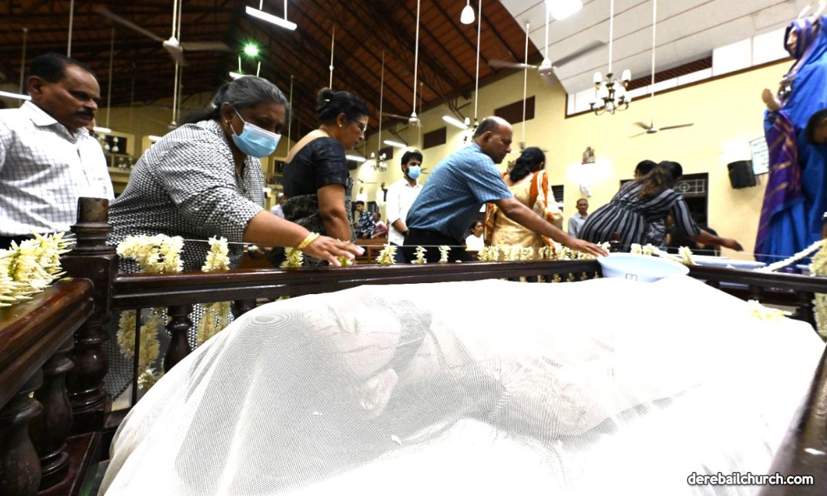 The Statue of Our Lady of Sorrows and of the Lifeless body of Jesus was brought in a procession to the altar. The devotees paid respect and kissed both these statues.