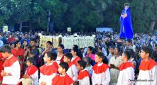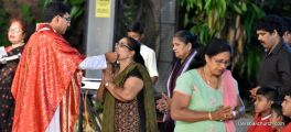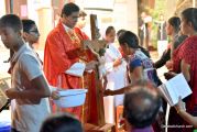The evening service commenced at 5:30 P.M. at Holy Family School Grounds. Rev. Fr.Austin Peres , Rev.Fr.Gratian Alvares and Rev.Fr.Richard D'souza chanted the Passion of Christ.In the homily Fr.Richard reflected upon three things ,significance of Good friday, significance of the holy cross , where he expanded the word Cross as C for Christ, R for Resurrection, O for Obedience , S for Salvation and S for Saviour. He also spoke on the significance of the Holy Cross in ones daily life. Homily was followed by Prayers of the faithful, offered for various needs of The Holy Catholic Church and other general purposes , Veneration of the Cross and distribution of Holy Eucharist. Large number of devoted parishioners took part in this ceremony and carried a significant message to face the troubles in life without losing faith in Christ.