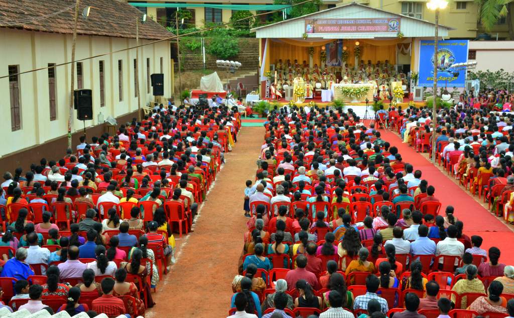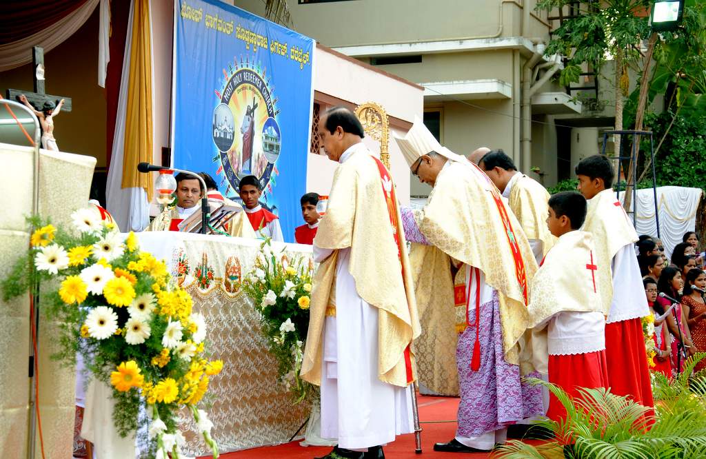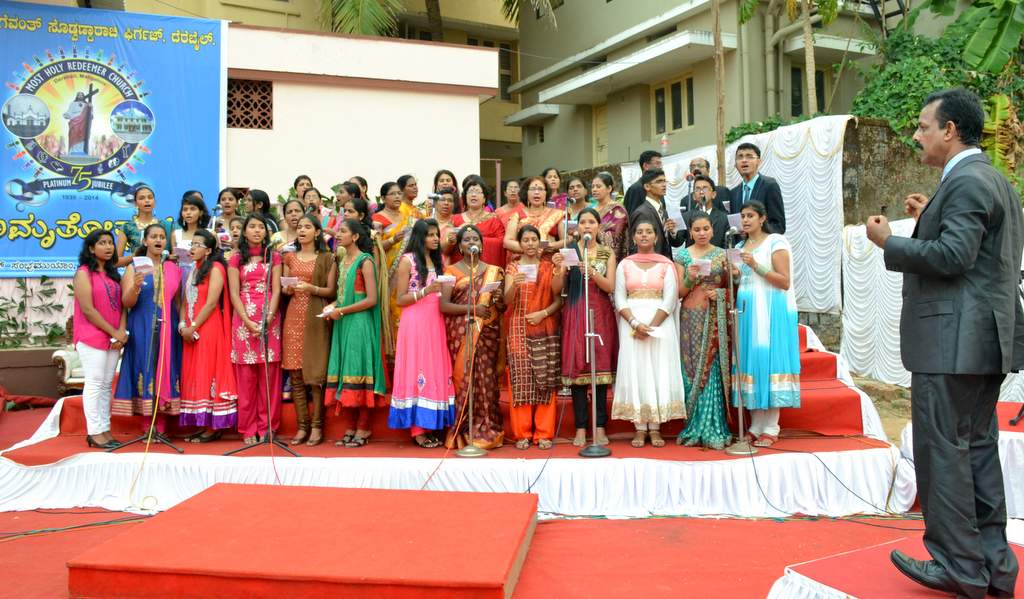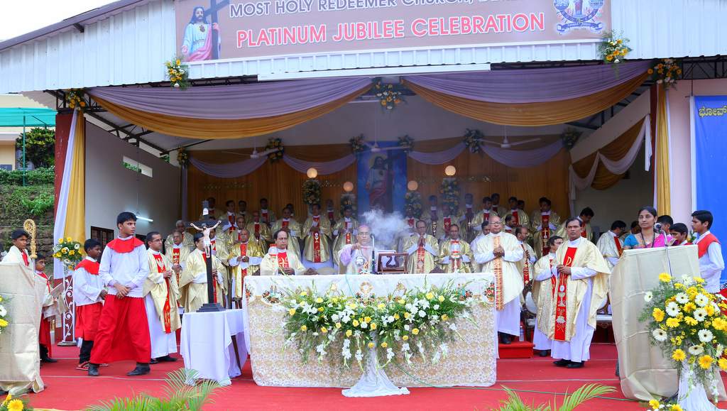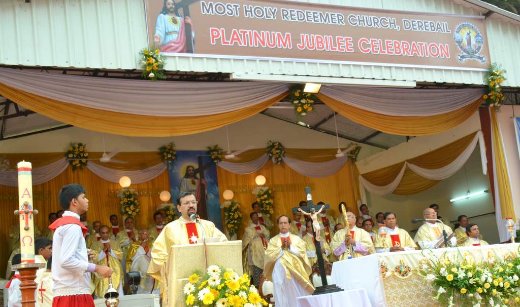 On 27thApril, the 2nd Sunday of Easter which is also the Divine Mercy Sunday, the Parishioners gathered at the church grounds at 5 PM for the grand finale of the Platinum Jubilee Celebrations of the Most Holy Redeemer Church, Derebail. The celebration began with the Eucharistic Mass with the Main Celebrant and President, Most Rev. Dr. Aloysius Paul D’souza, Bishop of Mangalore.