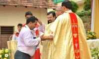 Rev. Msgr Joel Pais, a Parishioner and presently the Vicar General of Baroda Diocese in his homily said that it was indeed a proud moment for him to be present today as it was in this Parish that he grew up and received all the 5 sacraments. It was in this Parish that the seeds of faith were sown and they were instrumental for him to become a priest. He recalled the relentless efforts of late Sylvester Rego because of whom Derebail Parish saw the light of the day. Just like in today’s first reading from the Acts 2: 42-47 where the apostles held the brethren together by partaking food with glad and generous hearts and Praising God, so also he called the gathering to continue the bond of fellowship among one another and strengthen the faith in Christ Jesus. He invited the Parishioners to actively participate and take leadership roles and thus get empowered to make the Parish community vibrant and strong.