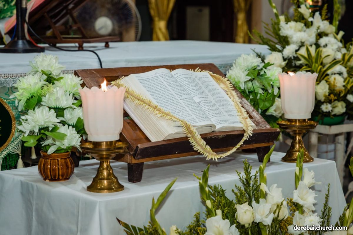 The entire liturgy was conducted by the catechism students . The choir by the YCS members added to the solemnity of the celebration.