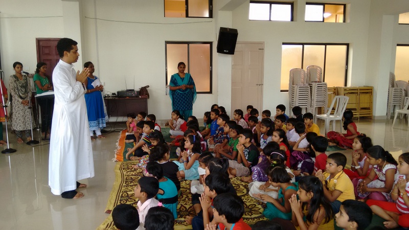 Fr. Anil Lobo was delighted with the active participation of our little kids. The team who lent their support include Mrs.Jasmine D’Souza, Sheldon Alvares, Preston Sequeira, Prajwal Sequeira, Kevin Suares, Jennifer Pinto, Jennifer Carlo, Avinash D’souza, Evon Sequeira and Ivy Dsouza .The kids were taken care of by the Catechism teachers Mrs Oreen, Mrs Lorretto and Mrs Helen. This programme focuses on befriending kids with love of Jesus and teaching them Christian values. Refreshments were then served.