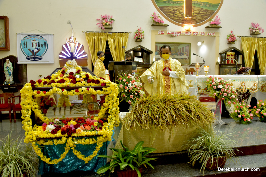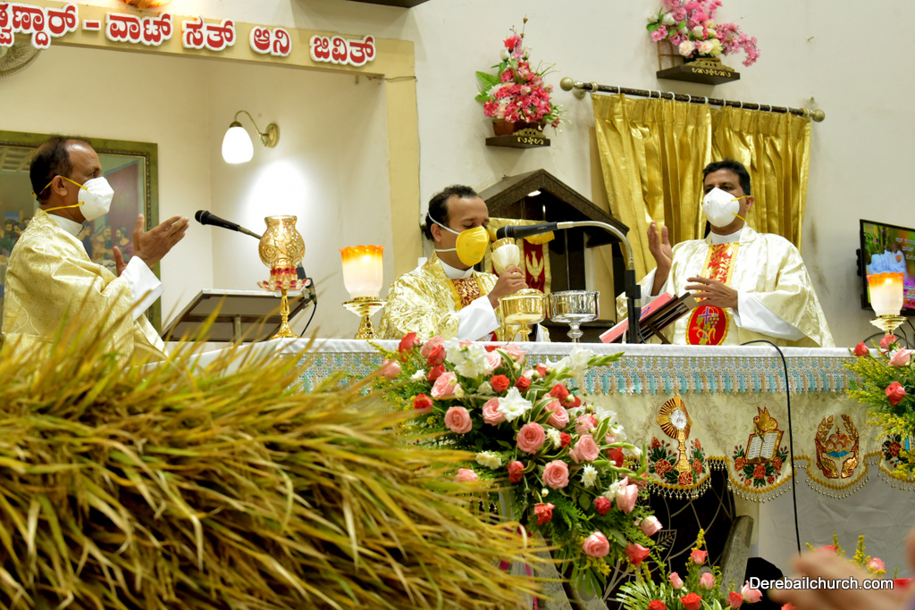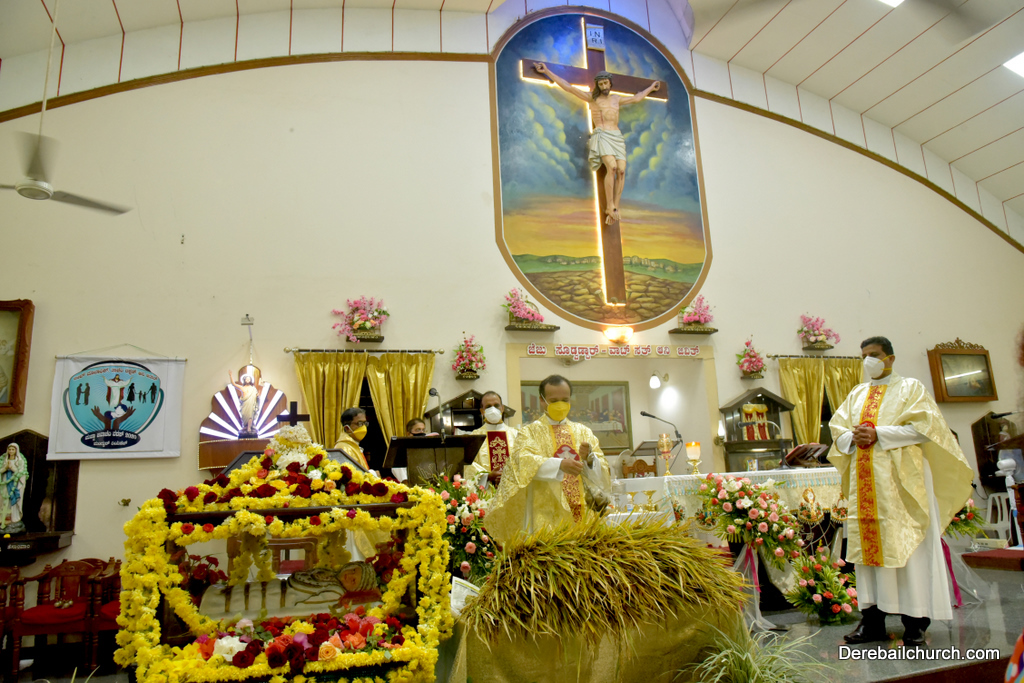 The new crop was distributed among the parishioners at their respective seats. The Candle of honour was distributed to the donours.