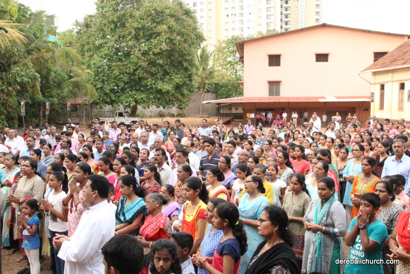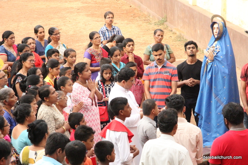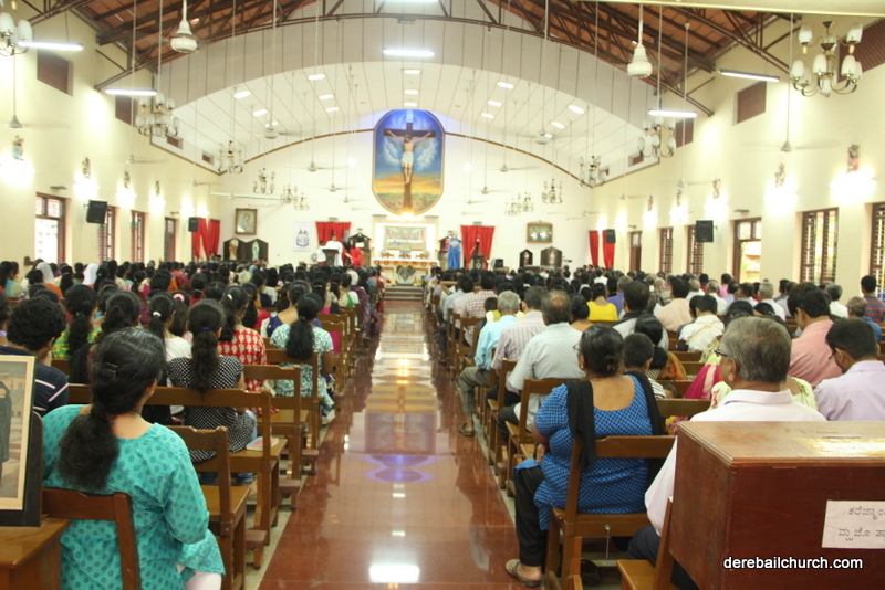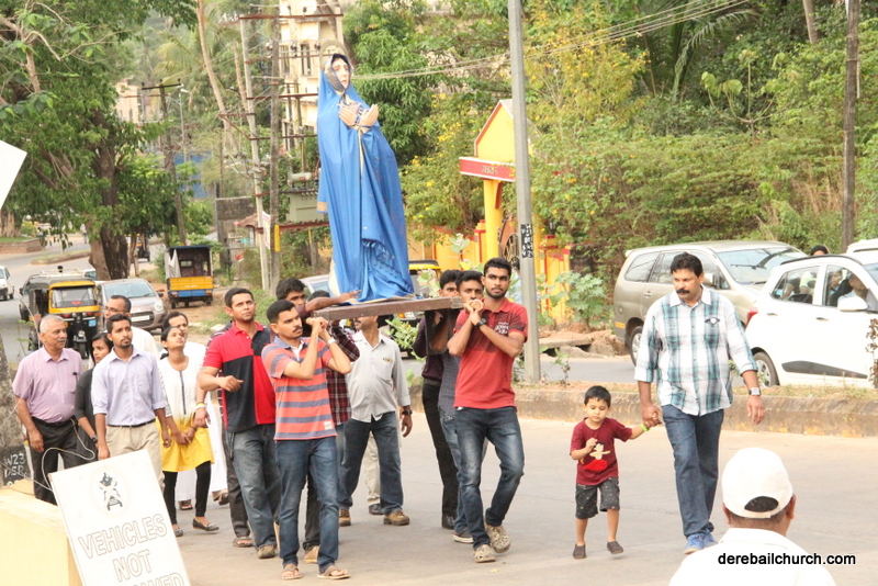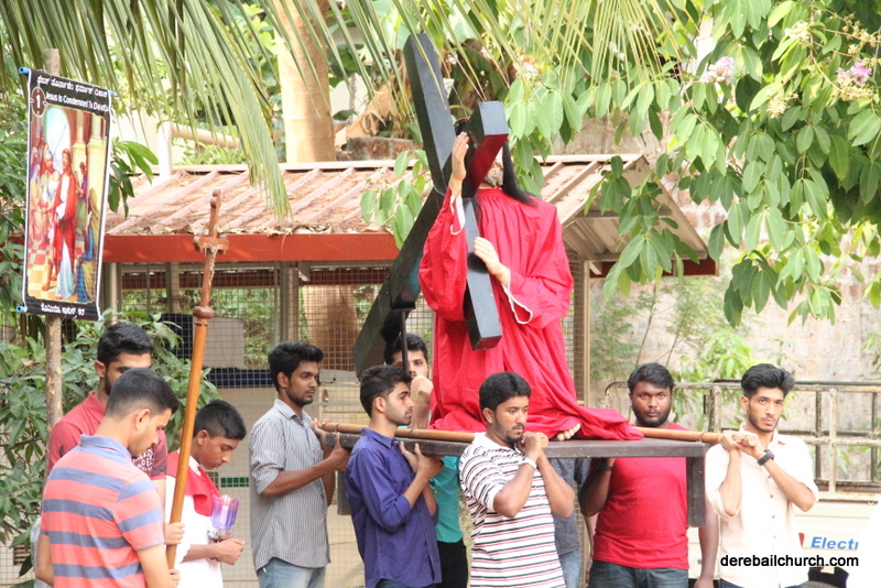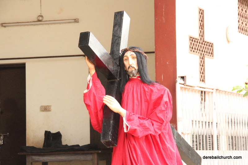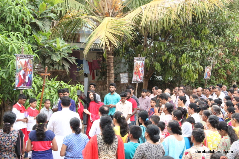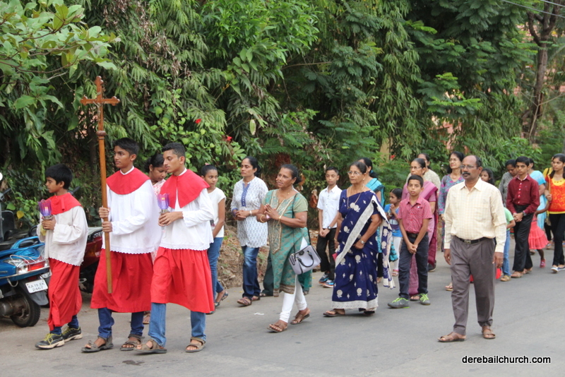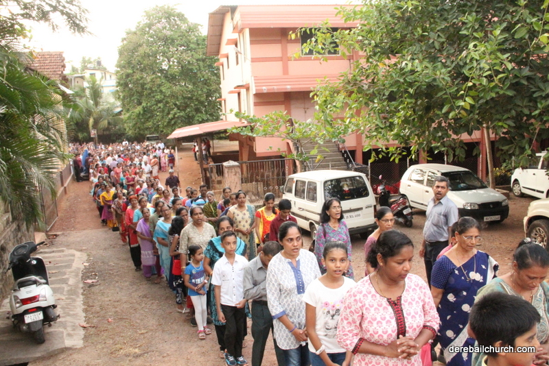 On Palm Sunday the glorious entry of Jesus into Jerusalem is celebrated in churches all over the world. As a part of the service of the Palm Sunday, a Way of the Cross was conducted in the Holy Family School Grounds, Derebail at 5 in the evening. The Parish Choir carried out the Way of the Cross with great solemnity. After the Way of the Cross the parishioners proceeded to the church where a homily was delivered by Fr.Gratian Alvares. The evening was spent in veneration of Jesus and Mother Mary.