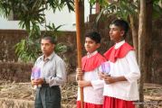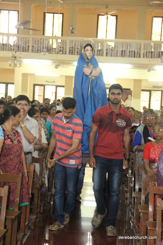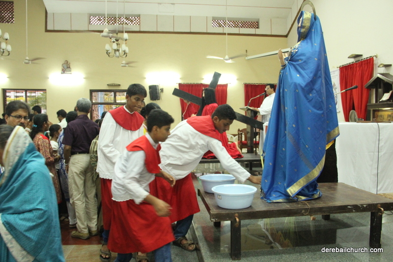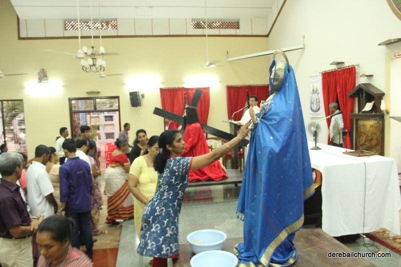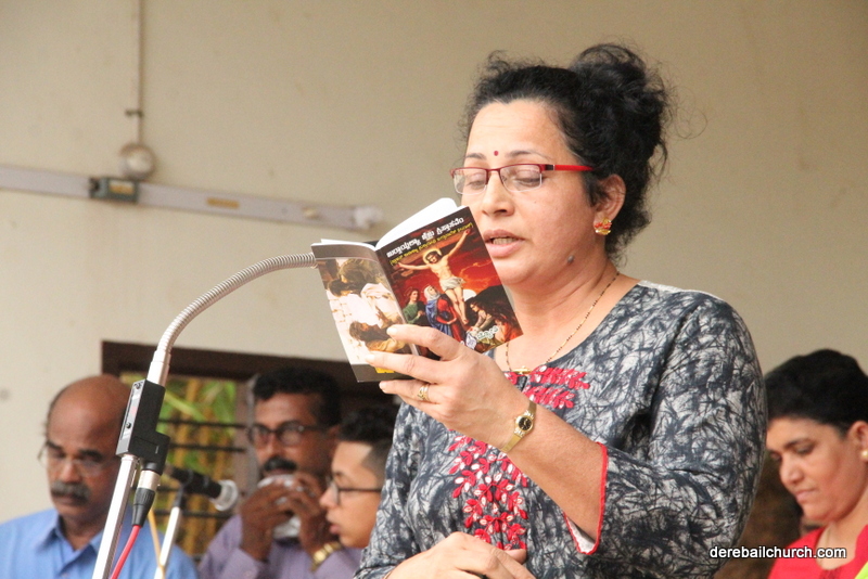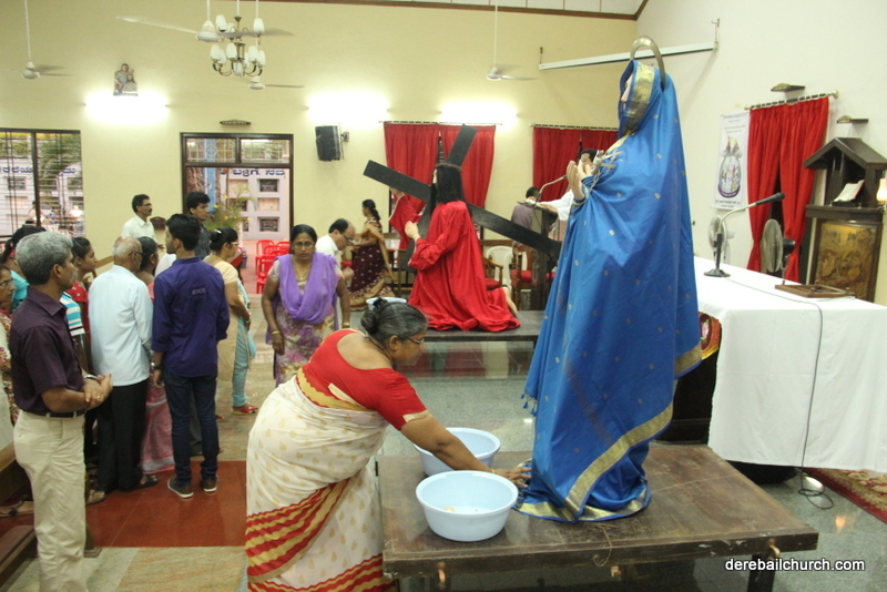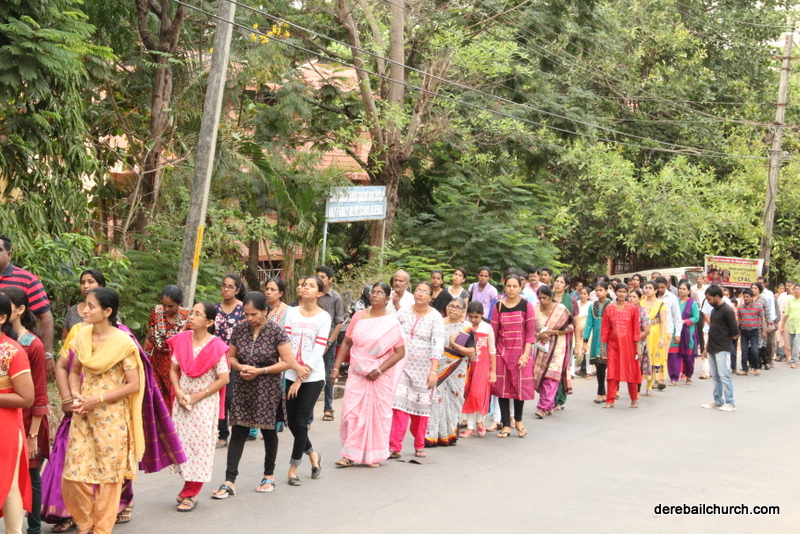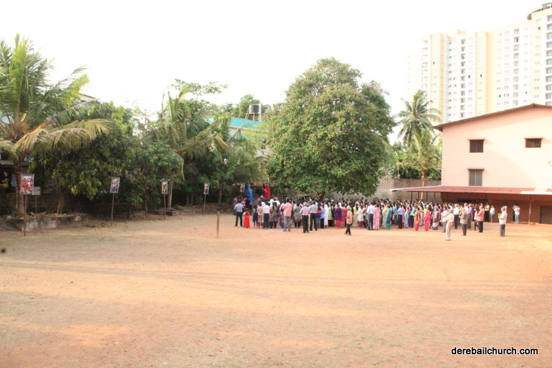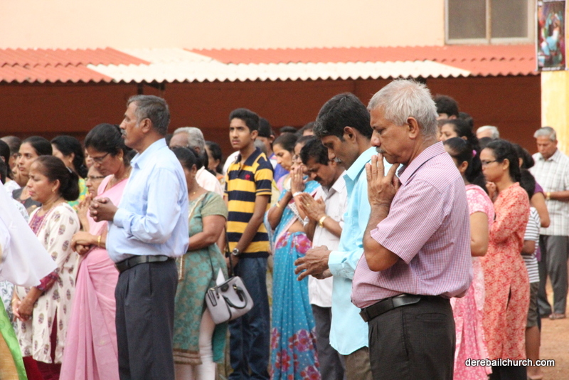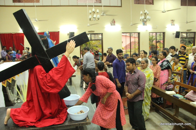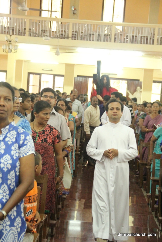 On Palm Sunday the glorious entry of Jesus into Jerusalem is celebrated in churches all over the world. As a part of the service of the Palm Sunday, a Way of the Cross was conducted in the Holy Family School Grounds, Derebail at 5 in the evening. The Parish Choir carried out the Way of the Cross with great solemnity. After the Way of the Cross the parishioners proceeded to the church where a homily was delivered by Fr.Gratian Alvares. The evening was spent in veneration of Jesus and Mother Mary.