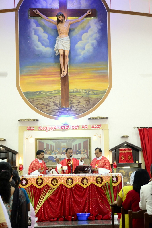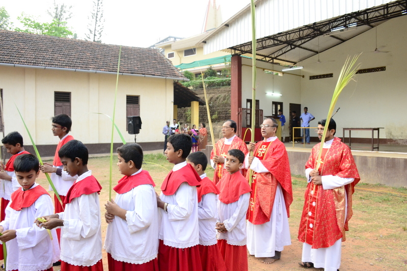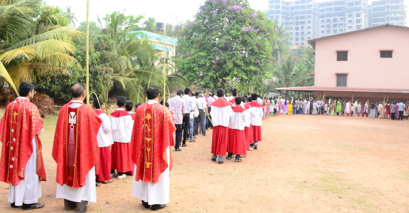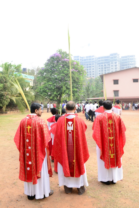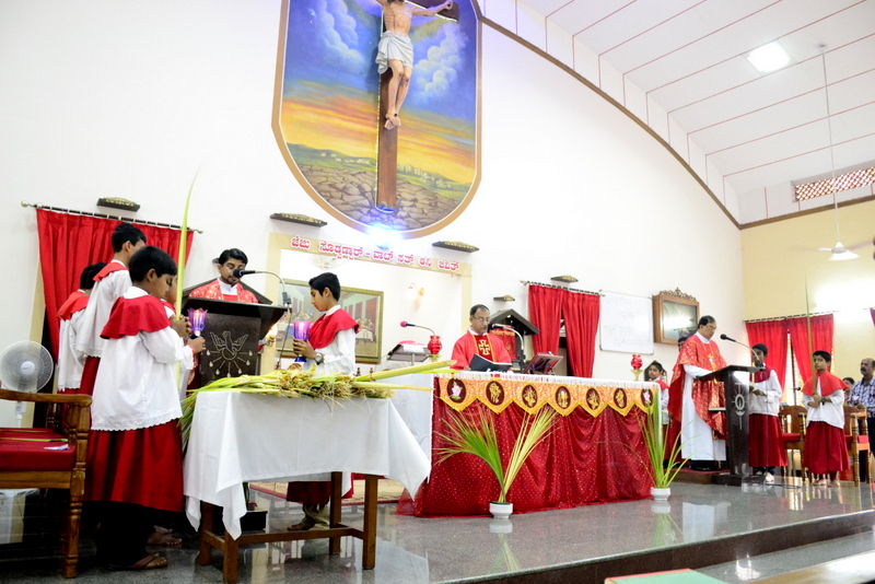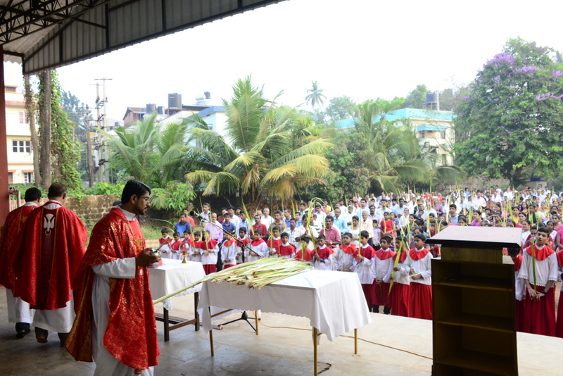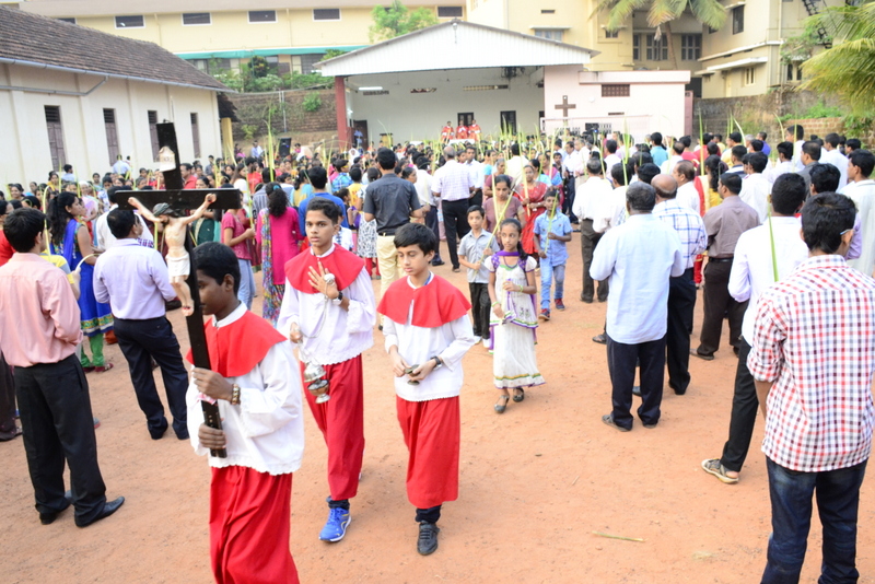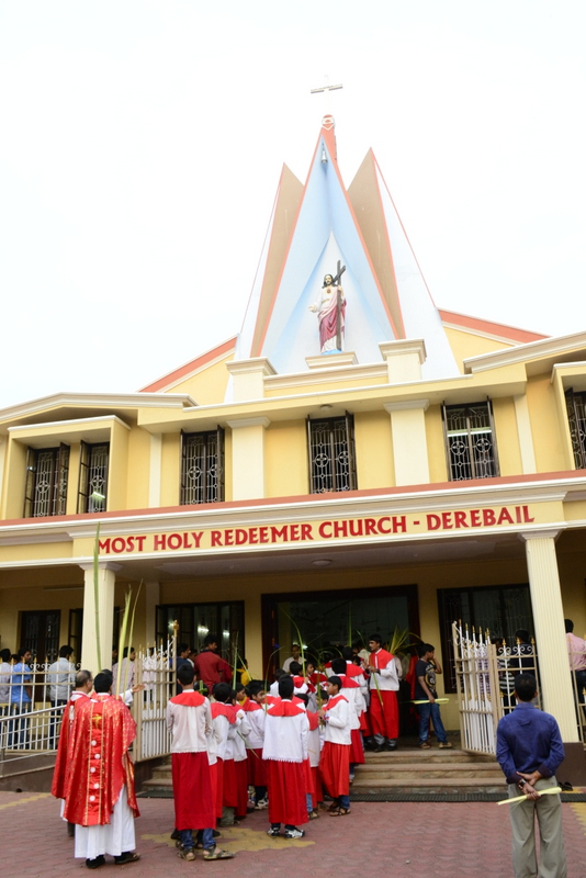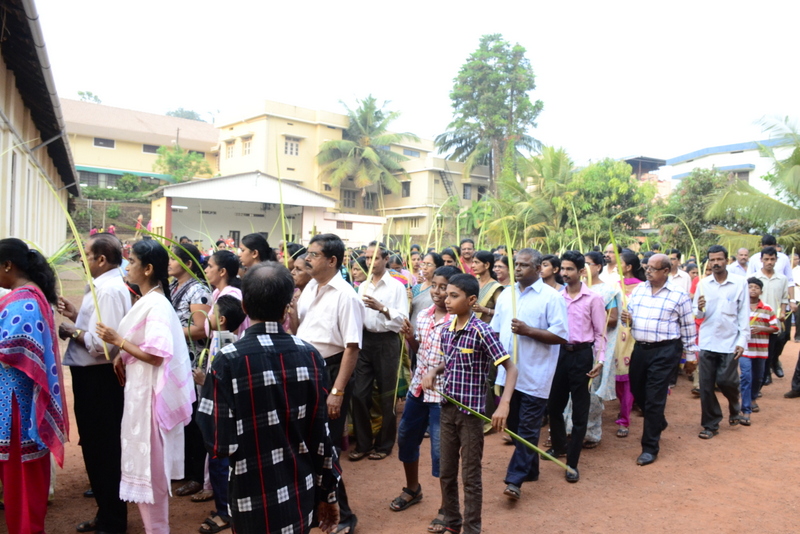 Palm Sunday marks the "beginning of the end" of Jesus's work on the earth. It symbolizes the start of what is called "Passion Week" the final seven days of Jesus' earthly ministry. Besides, Palm Sunday, the day we celebrate the triumphal entry of Jesus into Jerusalem was observed in the Most Holy Redeemer Church, Derebail on the 29th of March, 2015. The ceremony of blessing the palm began at 7.00A.M in the Church grounds, where devotees assembled in large numbers.  The parishioners then participated in the procession and the mass that followed in the Most Holy Redeemer Church. Rev. Fr .Paul Sequeira was the Main Celebrant of the mass; the co-celebrants were Rev.Fr.Peter D’souza, the Parish Priest and Rev.Fr.Vinod Lobo,the Assistant Parish Priest. The entire mass was solemnized by the hymns sung by the Senior Choir. The Parish Priest, Rev. Fr. Peter D’souza thanked Rev.Fr. Paul Sequeira for celebrating the mass. The Palm Sunday Eucharistic celebration was then concluded with the hymn "Kursa tain havn patyeni dovartan".