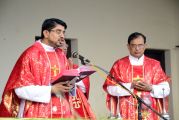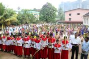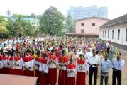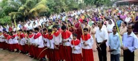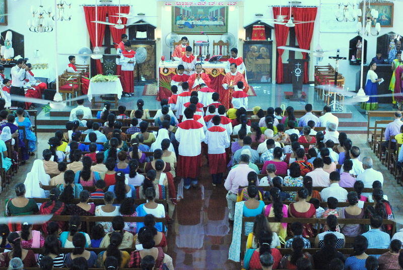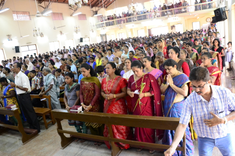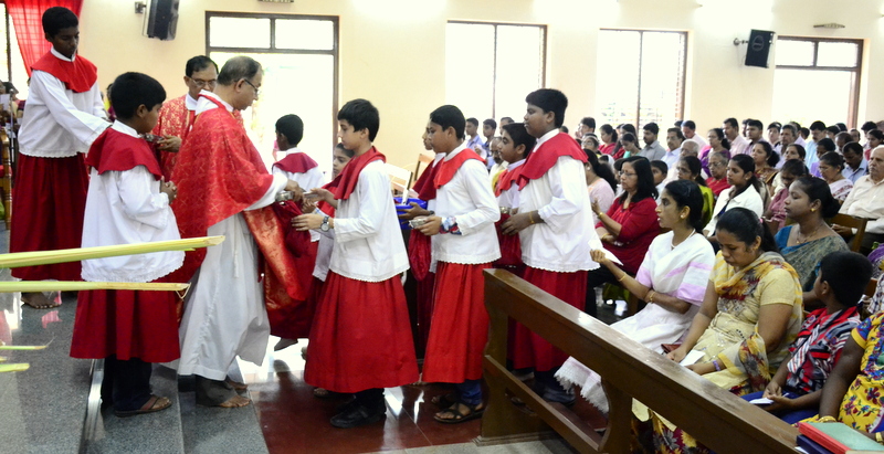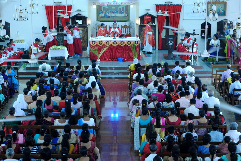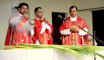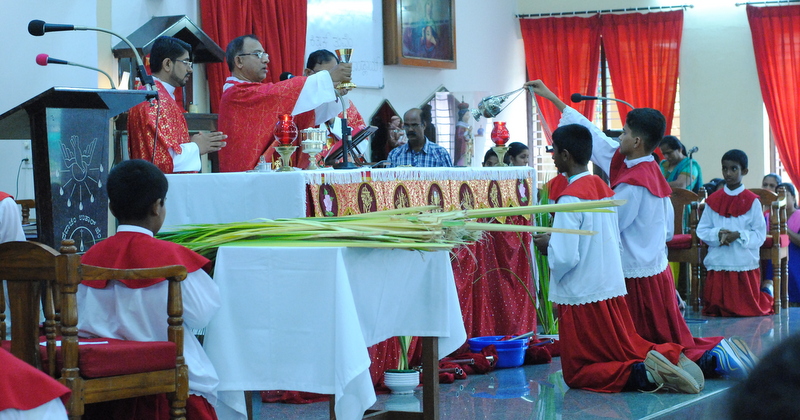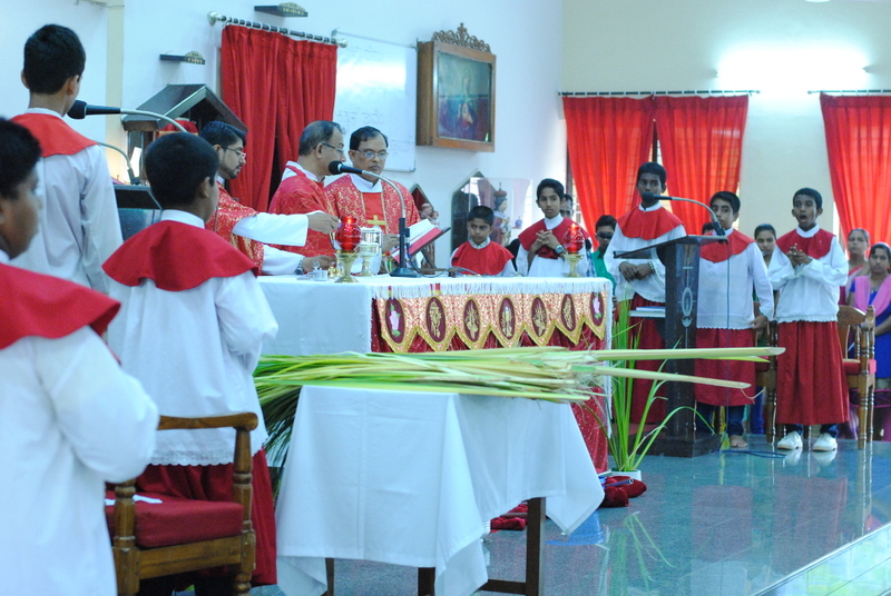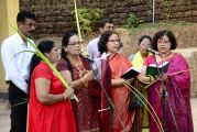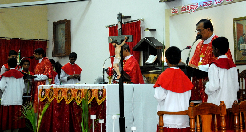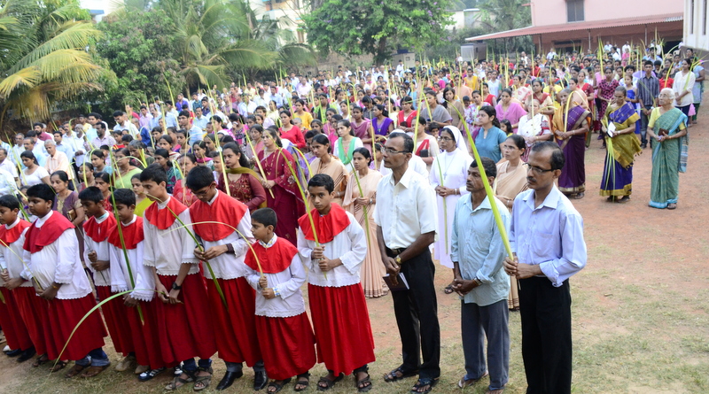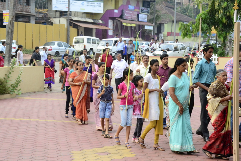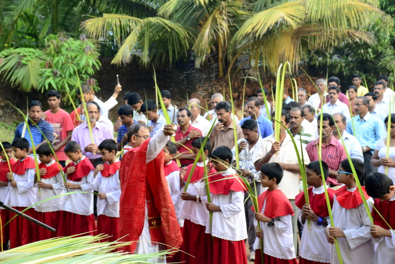 Palm Sunday marks the "beginning of the end" of Jesus's work on the earth. It symbolizes the start of what is called "Passion Week" the final seven days of Jesus' earthly ministry. Besides, Palm Sunday, the day we celebrate the triumphal entry of Jesus into Jerusalem was observed in the Most Holy Redeemer Church, Derebail on the 29th of March, 2015. The ceremony of blessing the palm began at 7.00A.M in the Church grounds, where devotees assembled in large numbers.  The parishioners then participated in the procession and the mass that followed in the Most Holy Redeemer Church. Rev. Fr .Paul Sequeira was the Main Celebrant of the mass; the co-celebrants were Rev.Fr.Peter D’souza, the Parish Priest and Rev.Fr.Vinod Lobo,the Assistant Parish Priest. The entire mass was solemnized by the hymns sung by the Senior Choir. The Parish Priest, Rev. Fr. Peter D’souza thanked Rev.Fr. Paul Sequeira for celebrating the mass. The Palm Sunday Eucharistic celebration was then concluded with the hymn "Kursa tain havn patyeni dovartan".