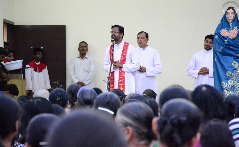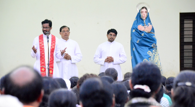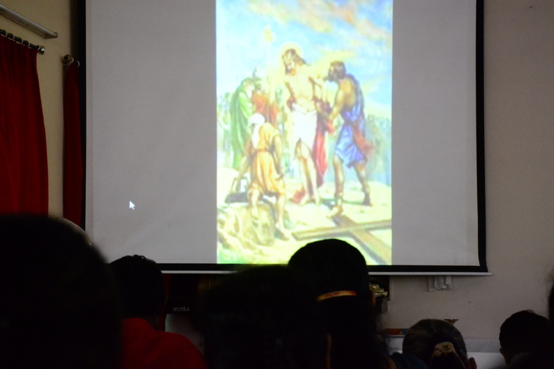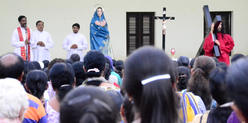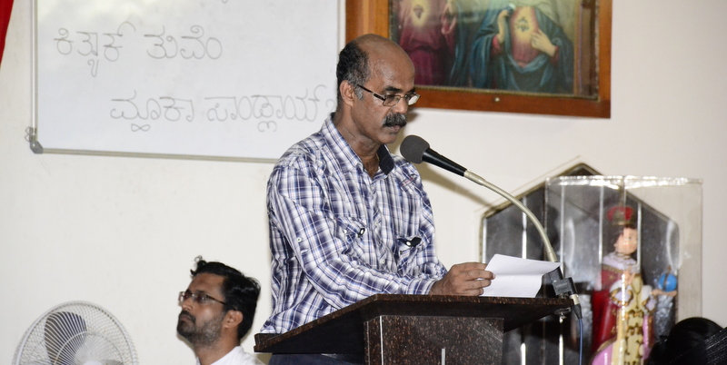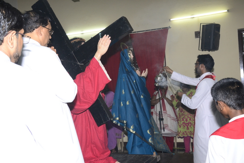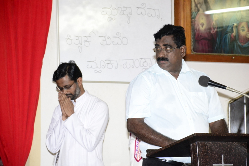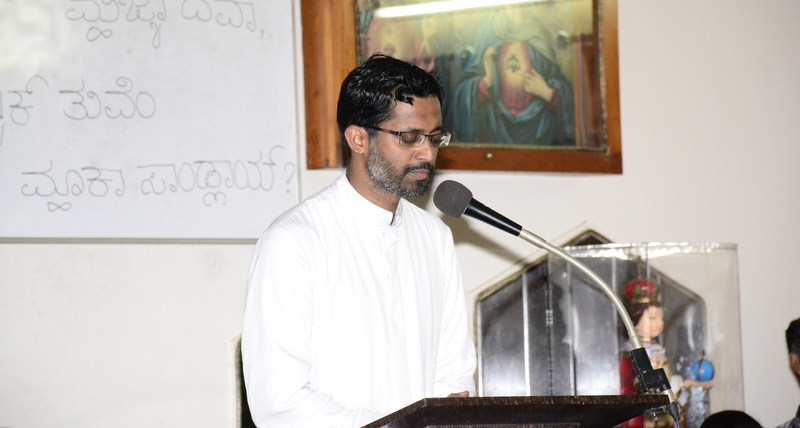 The Parish priest Rev.Fr.Peter D’souza welcomed Rev.Fr. Prakash Monteiro (currently serving as a Administrator of St.Philomena College, Puttur) to deliver his homily. Rev. Fr.Prakash Monteiro began his sermon quoting the words of C.S.Lewis , who had said that God whispers to us in our happy times. He speaks to us through our conscience. But God cries out to us in our times of trouble. He teaches us to become strong in our faith and to be humble. Before recollecting the passion of Christ, Rev.Fr.Prakash Monteiro categorized difficulties into 4 groups. First, the difficulties that we face because of our own sins or mistakes. Second, the difficulties that we face due to the sins committed by others. Third, the difficulties we face due to unknown reasons. Four, the difficulties we face while fighting for justice. Fr. Prakash said that Jesus’ suffering belonged to the fourth category of difficulties. He narrated in a lucid manner how Jesus suffered even though he emphasized the importance to love God and our neighbours. He said no person is free from worries or difficulties. But what is needed of us during our times of trial is to keep firm our faith in the mercy of the Almighty just as how Jesus had done while he was on the Cross.
