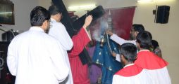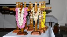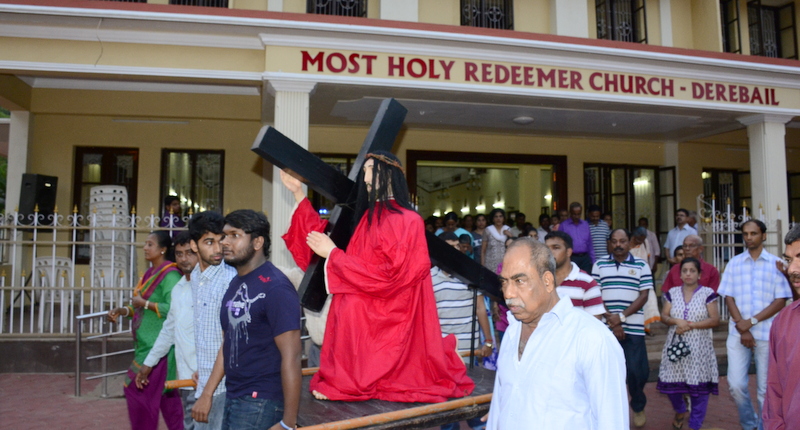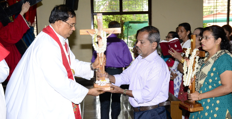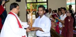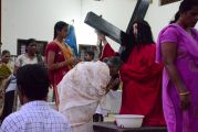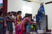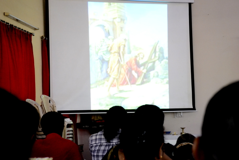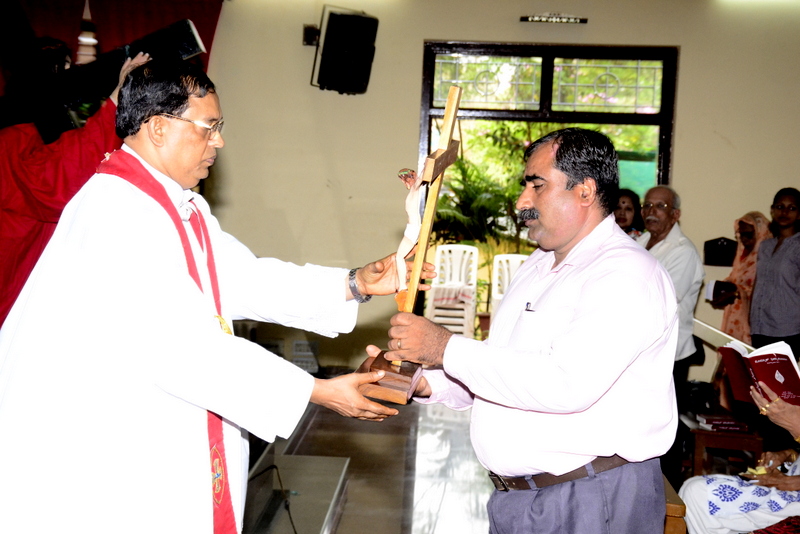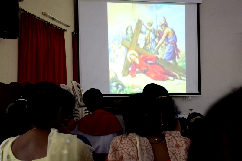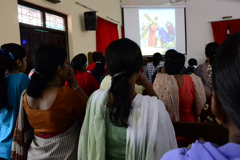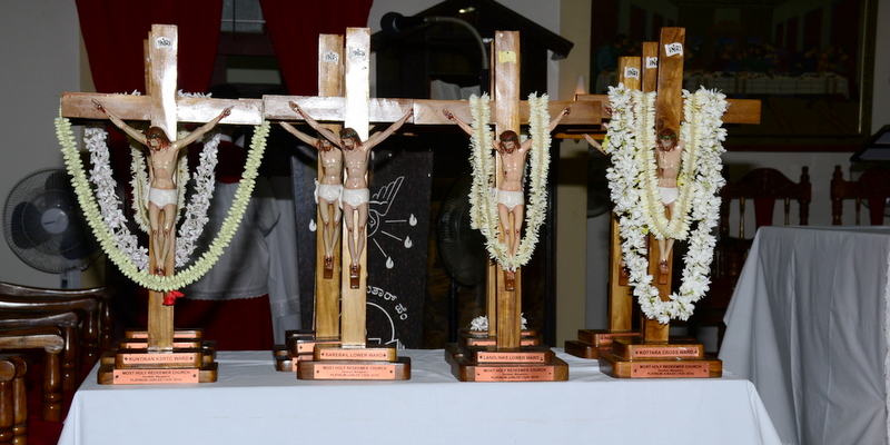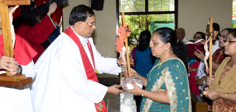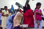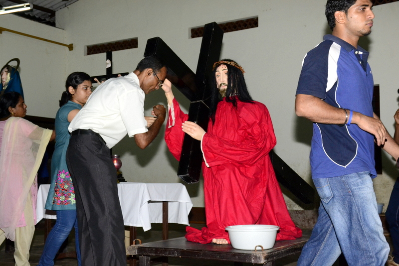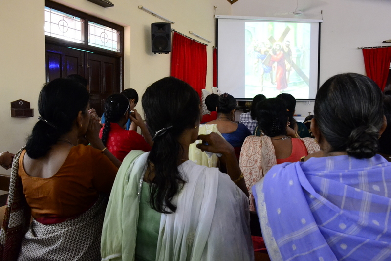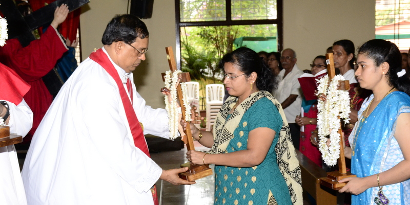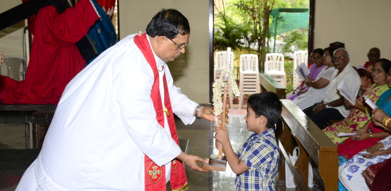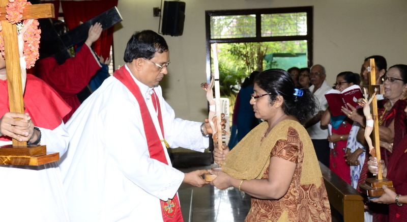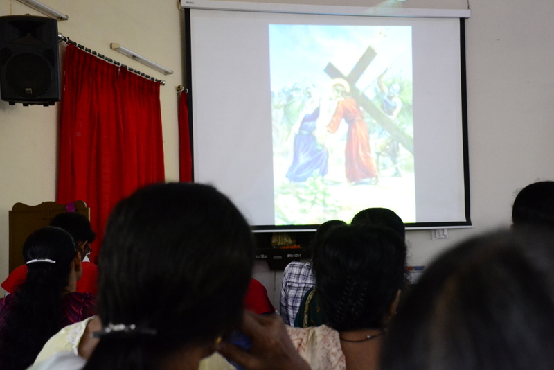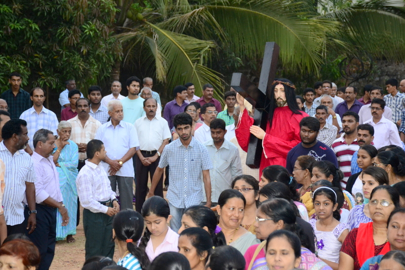 After the Eucharistic celebration on Palm Sunday, the devotees reassembled in the church for the restoration of the 22 crosses that were dwelling in 22 respective wards, followed by a service that helped the parishioners recollect the sufferings that Christ had undergone during the last seven days of his earthly ministry. The Recollection commenced at 5.00 P.M on the 29th of March, 2015 with the Way of the Cross. Each station served to be a metaphor for the different sufferings that people face all over the world. The service was accompanied by the hymns that the Senior Choir members sang. Glimpses of Christ’s persecution were shown to the parishioners with the aid of Audio Visual.