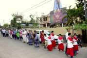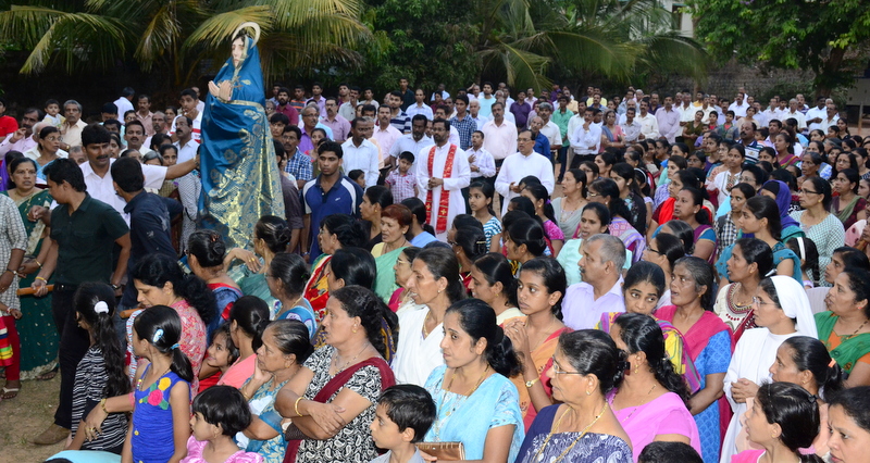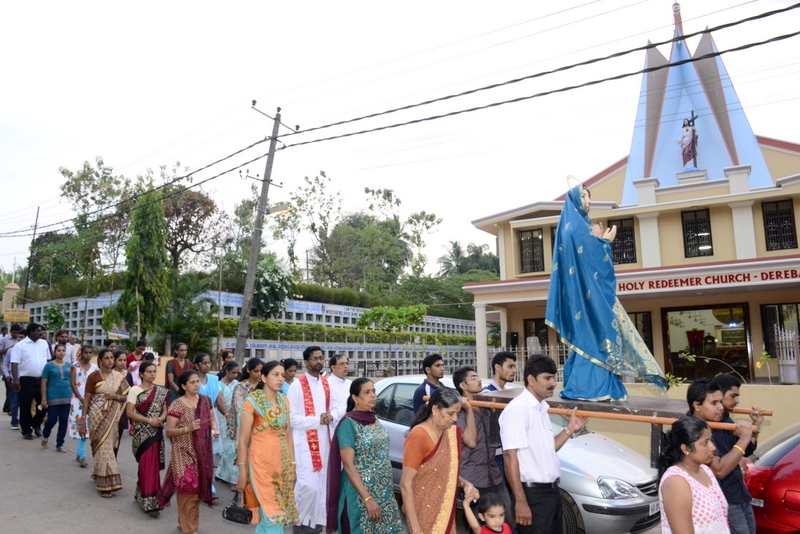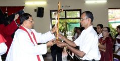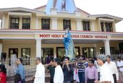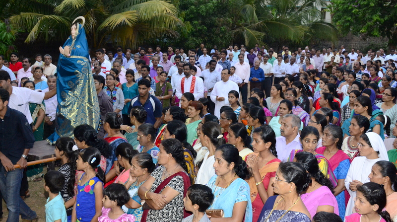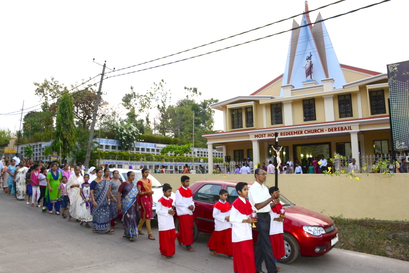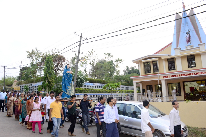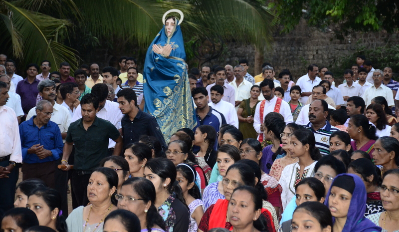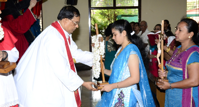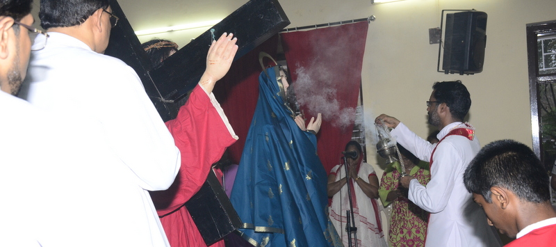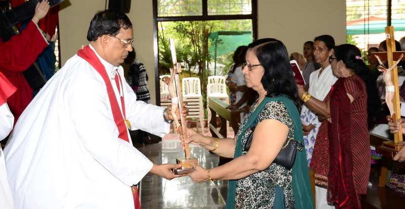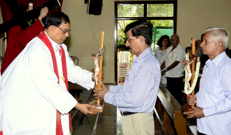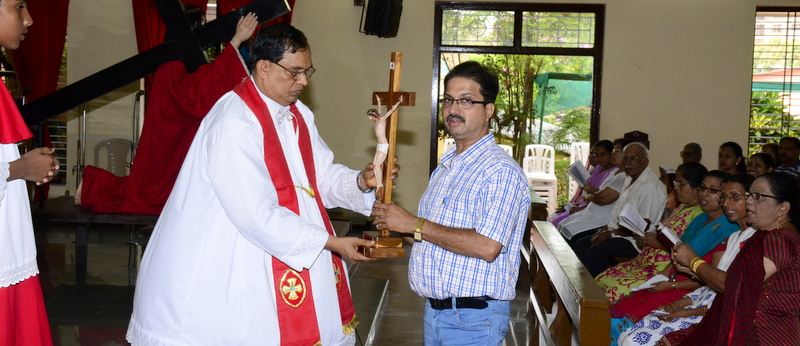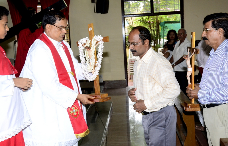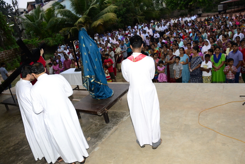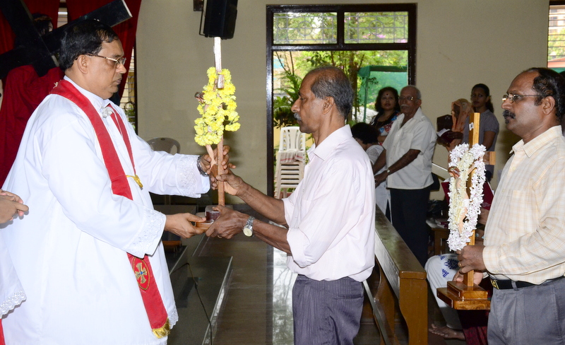 The sermon was then followed by a procession where the statues of Jesus with the Cross and Mother Mary were taken to the Church Grounds. A short prayer followed. Rev. Fr. Vinod Lobo, the Assistant Parish Priest thanked Fr. Prakash Monteiro for delivering such an insightful homily. Hymns were sung in the honour of the Glorious Cross while the parishioners venerated the same. With this the ceremony came to its culmination.