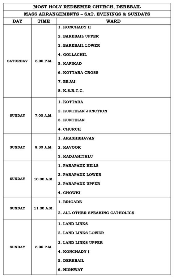 Revised Mass Arrangements - Most Holy Redeemer Church, Derebail Back