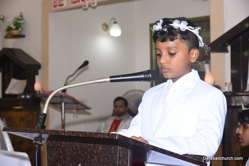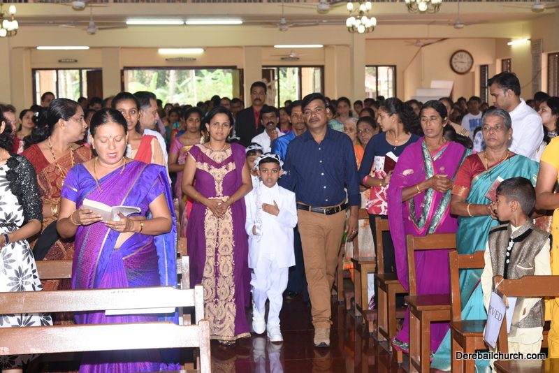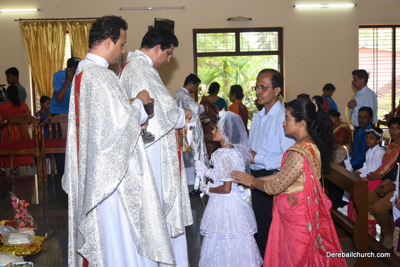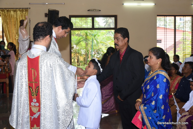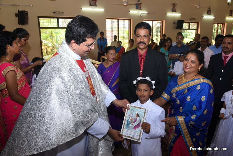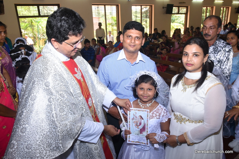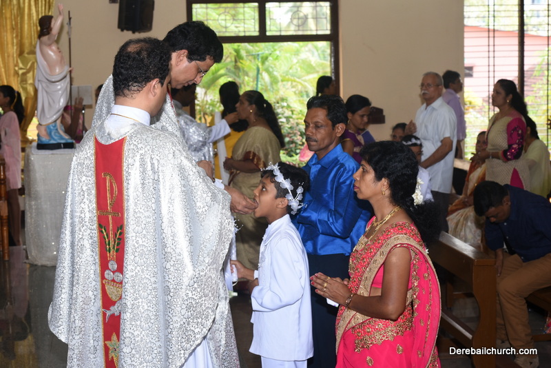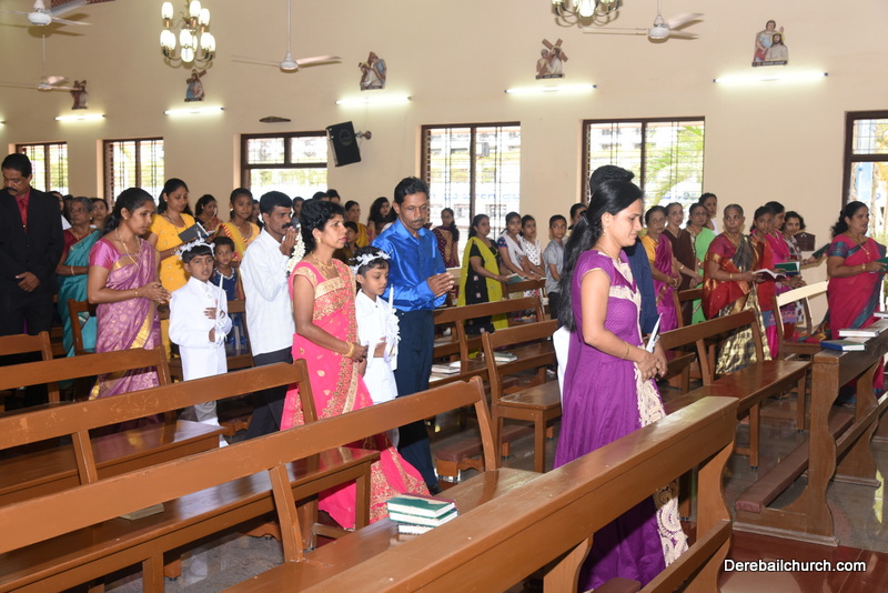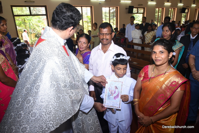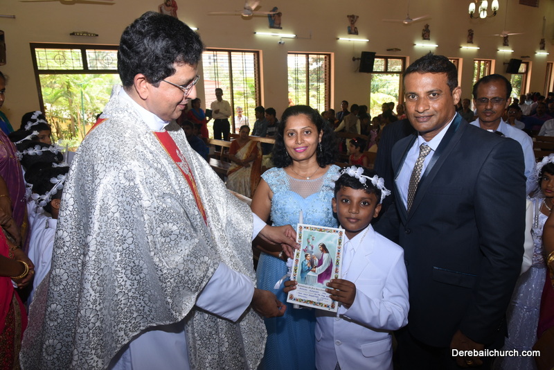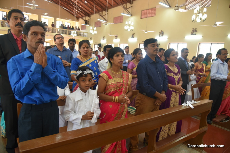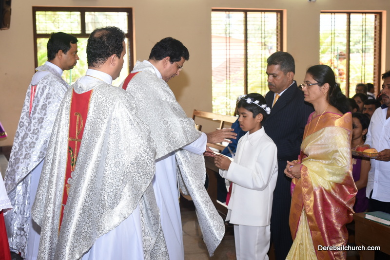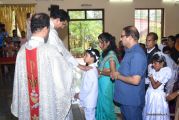 Every year on the first Sunday of May, the children of the parish receive their First Holy Communion. On the 7th of May, 2017 about 22 children welcomed Jesus into their hearts in the form of Bread and Wine. The ceremony was conducted during the 9.15 AM children's mass. Rev.Fr.Austin Peres concelebrated the mass with Fr.Gratian Alvares, Fr.Walter Pinto and Fr.Melwyn D'souza from Fr Mullers Hospital. The entire liturgy was carried out by the communicants. Also, a hymn was sung by the communicants just before receiving Jesus into their hearts.